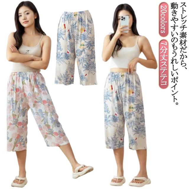 ひんやり ステテコ ズボン ズボン 大きめ ワイドパンツ リラックス 春 秋 パジャマ ゆったり パンツ レディース 薄手 サラサラ リラックスパンツ 春夏 やわらかい かわいい ホームパンツ 部屋着 送料無料 夏 総ゴム ルームウェア 涼しい