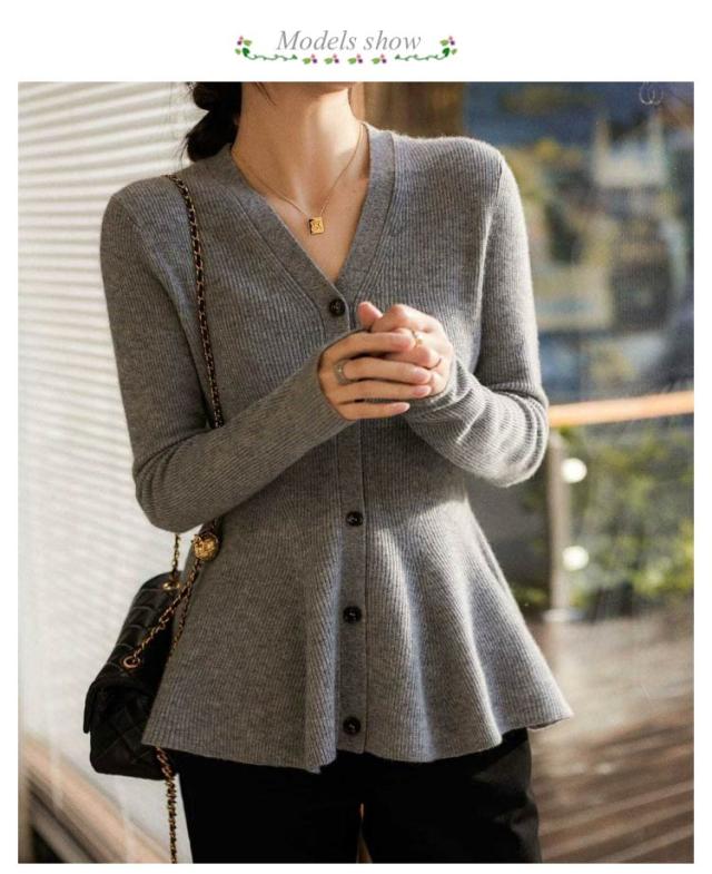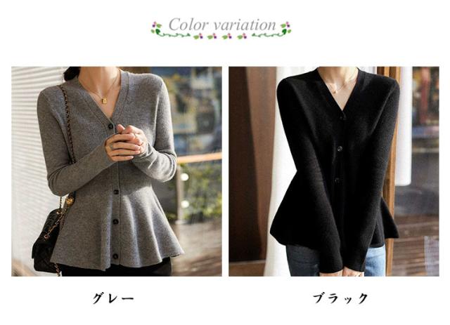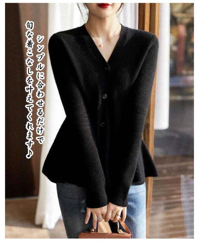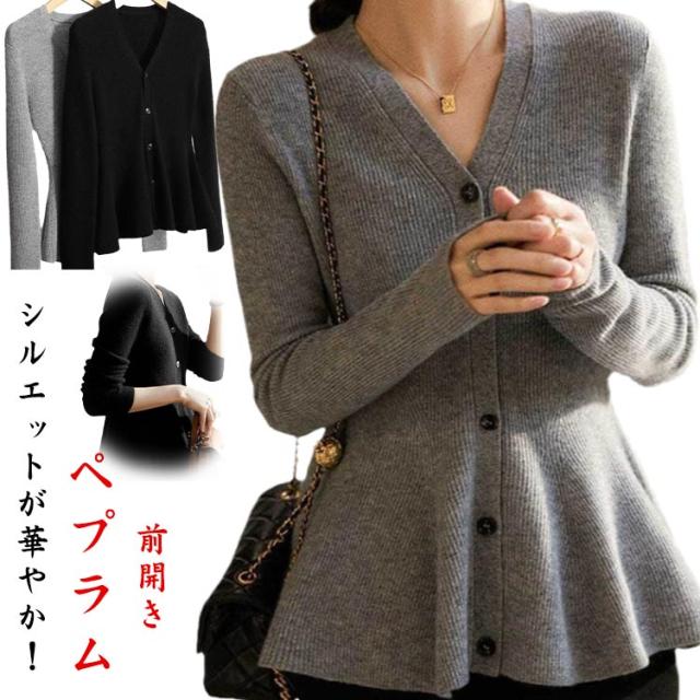 長袖 ニットカーディガン レディース ニット 秋 トップス ペプラム Vネック ニット カーディガン 春 シンプル 前開き 羽織り フレア フィット 暖かい 羽織り 上品 フェミニン Aライン 美シルエット