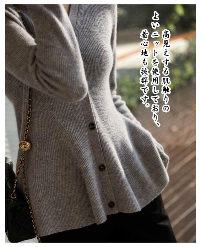 | ペプラムシルエットが華やか! トップスとしても、羽織りとしても活躍するニットカーディガン 高見えする肌触りのよいニットを使用しており、着心地も抜群です。 シンプルに合わせるだけで旬な着こなしを叶えてくれます♪ | |
