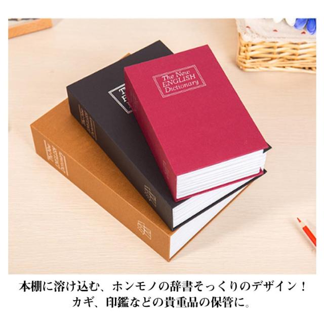 | ★本物そっくりの英和辞典型金庫★ 本棚に溶け込む、ホンモノの辞書そっくりのデザイン! カギ、印鑑などの貴重品の保管に。 パッと見ただけでは金庫だなんて想像も付かない!? 英語辞書そっくりのデザインの金庫です。 本棚にそのまま置けば、カモフラージュもバッチリ☆ 容量も十分!鍵や印鑑などの貴重品の保管も安心です。 コンビネーションロックを設計し、3桁暗証番号でお好きな番号に設定でき、鍵を紛失する心配はなく、防犯効果UPです!貴重品を入れた後、鍵が見つからず、金庫が開けられないという心配はありません。 | |