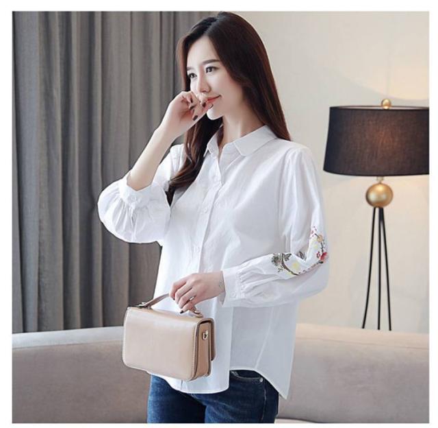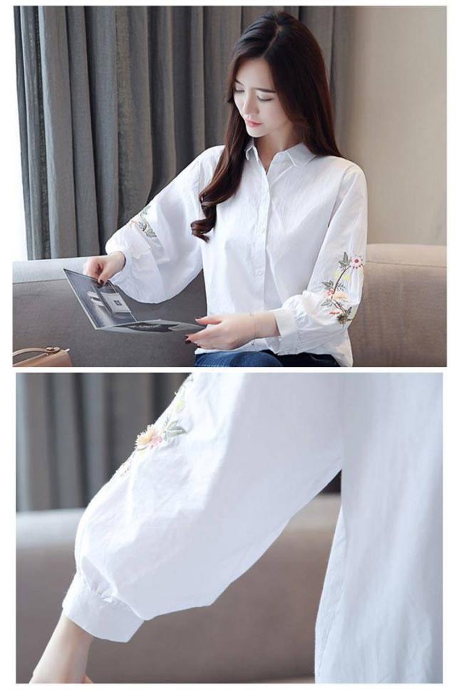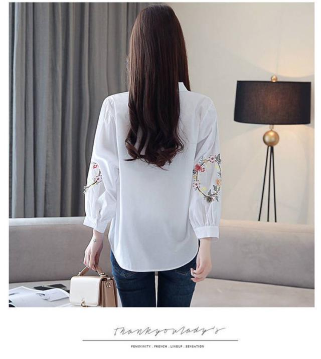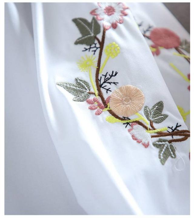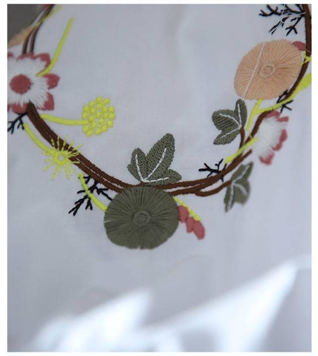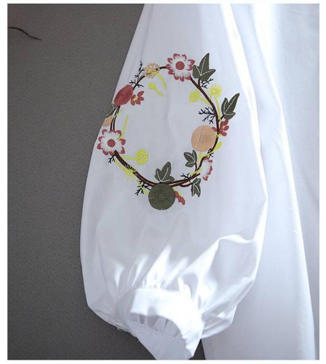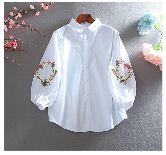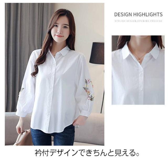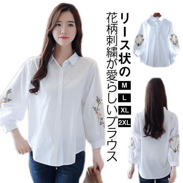 刺しゅう 綿 九分袖 花柄 袖刺繍 トップス ブラウス 刺繍 コットン トップス リース状 ふんわり袖 レディース ブラウス 羽織り 前開き おしゃれ かわいい 大人 可愛い ナチュラル カジュアル ホワイト 春