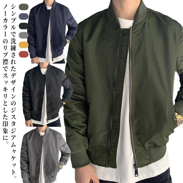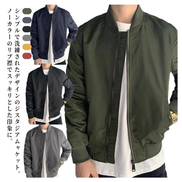 ノーカラージャケット 韓国ファッション フライトジャケット メンズ MA-1 立ち襟 冬 秋アウター ライトアウター ゆったり ジップジャケット 薄手 ブルゾン おしゃれ 秋服 無地 野球服 フライトジャケット ジャンパー スタジャン MA-1 カジュアル 春 秋