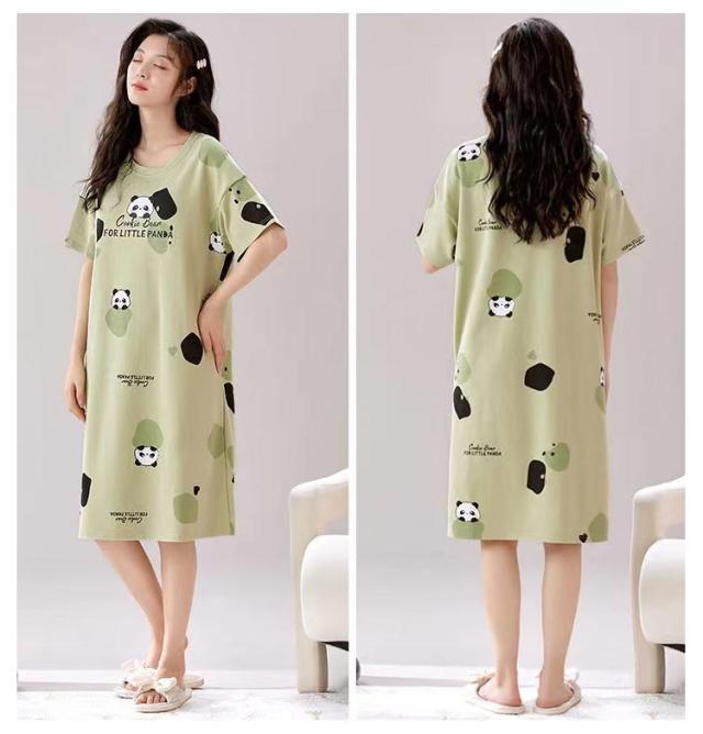ワンピース 熊 パジャマ レディース ルームウェア 半袖 ワンピース 女性 リラックス ロングTシャツ パジャマ 英字 部屋着 ワンピ 膝丈 可愛い ゆったり 薄手 涼しい 柔らかい 春夏