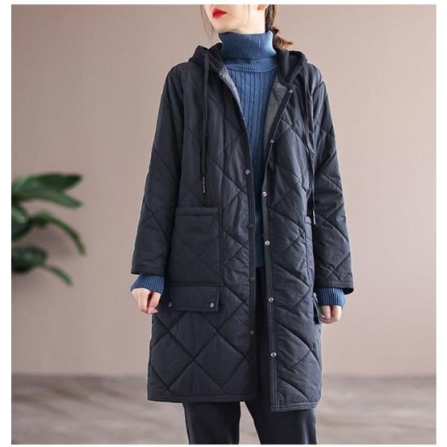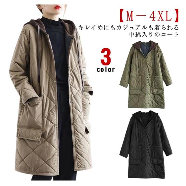 | キレイめにもカジュアルも着られる中綿入りのコート。【M−4XL】 しっかり体型をカバーしてくれるトレンドライクなロング丈です。 程よい厚みの中綿入りだから軽量でストレスなく、手軽にあたたかいのが魅力。 保温性にも優れているため、これからの季節に活躍間違いなし◎ フード付きで機能性&デザイン性も◎ ポケット付きで手を温めたり収納もできます。 スナップボタンで開閉できるので楽に脱ぎ着できます。 | |