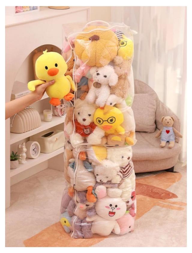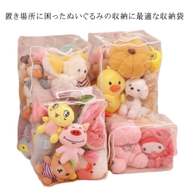 | 置き場所に困ったぬいぐるみの収納に最適な収納袋 透明の素材なので、おしゃれに収納でき、ファスナーを開けずに中身の確認が簡単にできます。 取っ手付きで、取り出しやすく、持ち運びしやすいです。 ぬいぐるみはもちろん、バッグ、ストール、マフラー、ベルトなどのファッション小物を入れておくのにもオススメ。 | |