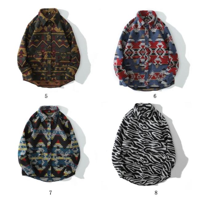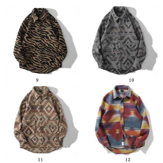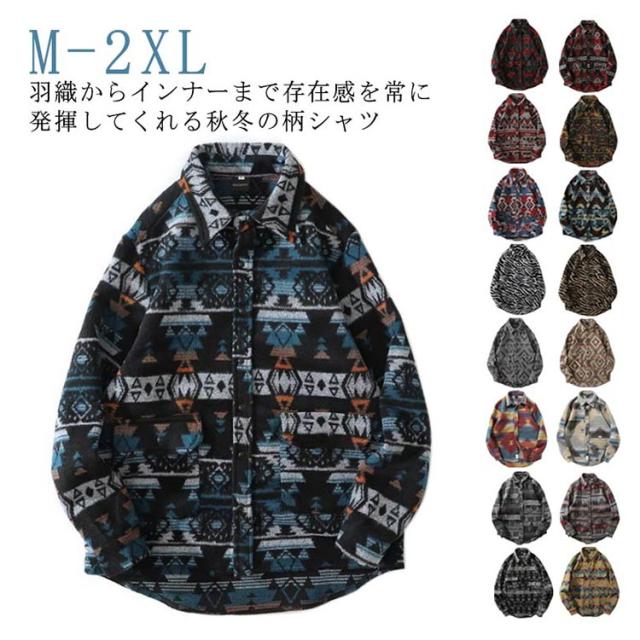 メンズ 長袖シャツ 起毛 幾何学柄 厚手 マルチ柄 ゼブラ柄 秋服 起毛シャツ ネルシャツ レトロ ネルシャツ 冬 カジュアルシャツ 羽織り 秋物 シャツジャケット 柄シャツ 春服 暖かい あったか ゆったり アメカジ オシャレ ヴィンテージ CPOジャケット 大きいサイズ