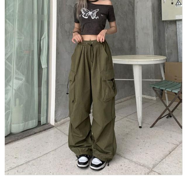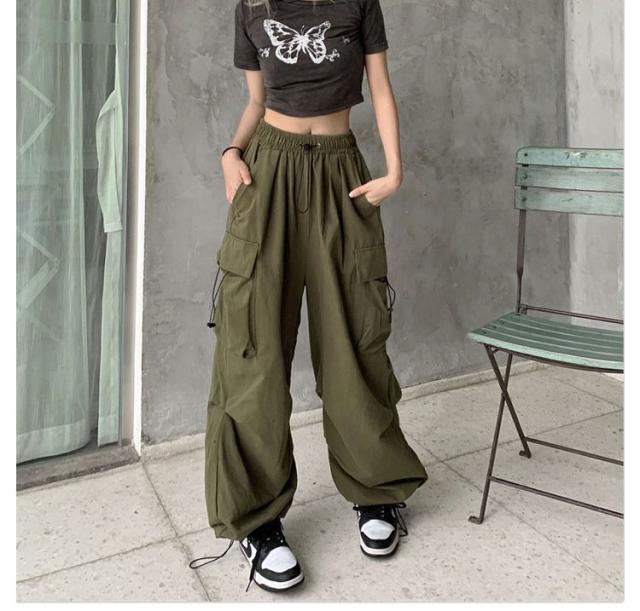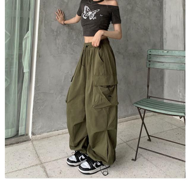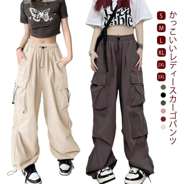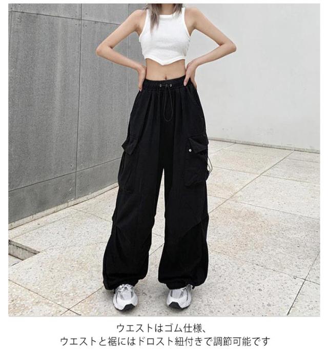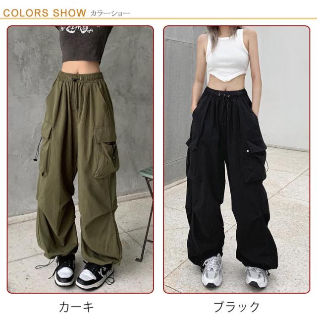 カーゴパンツ 長ズボン ワイドパンツ レディース ワイド ミリタリーパンツ カーゴパンツ 韓国ファッション パラシュートパンツ ストリート系 ジョガーパンツ かっこいい カーゴパンツ カーゴ カーブパンツ ドロスト ロング ズボン 体型カバー