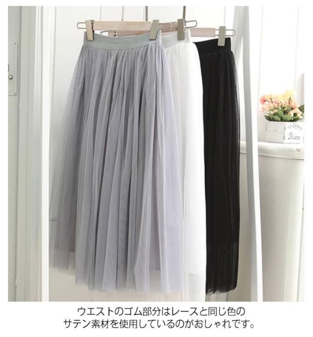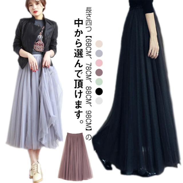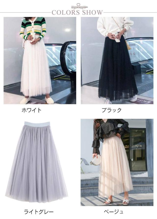通勤 マキシ丈 エレガント ボリューム チュールスカート スカート ひざ丈 ミモレ丈 ロング丈 ウエストゴム チュチュスカート ダンス カジュアル シンプル オールシーズン 3層 通学 デート お出かけ 旅行