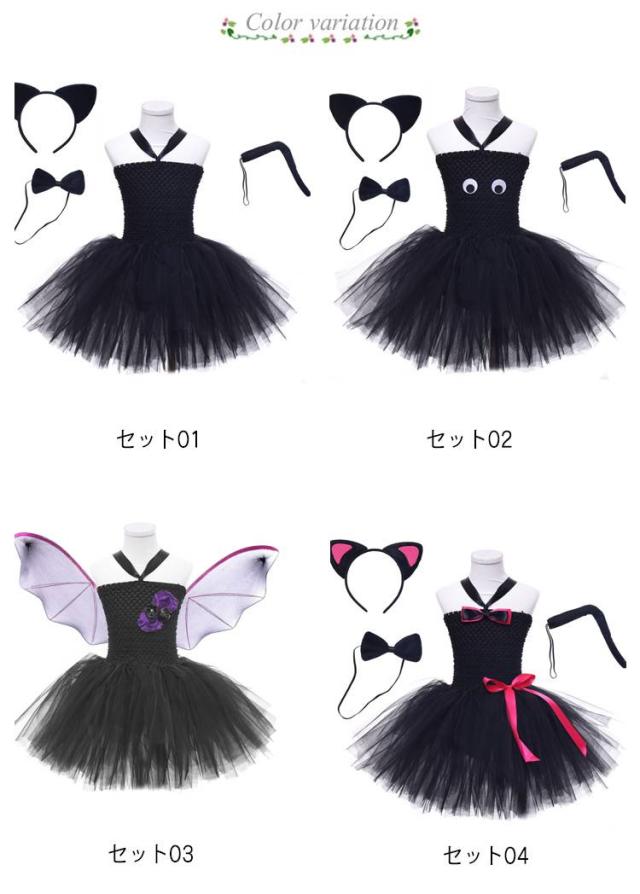 コスプレ カチューシャ 魔女 妖精 女の子 子供 黒猫 飾り 装 猫 こども ワンピース 魔法師 魔法使い ドレス 衣装 ハロウィン 尻尾 可愛い 変装 コスチューム 悪魔 ハロウィン衣装 ステージ衣装