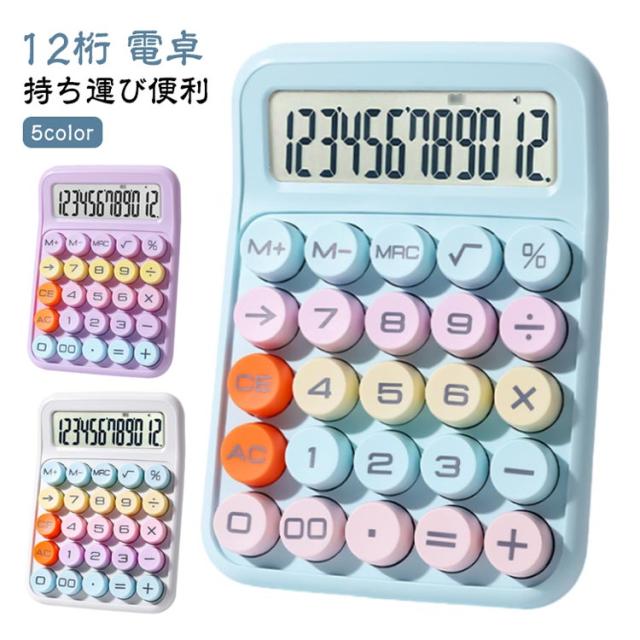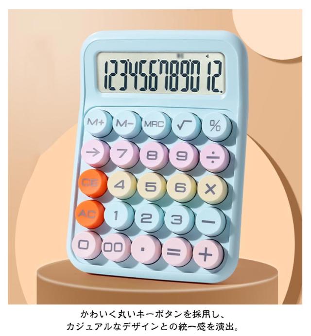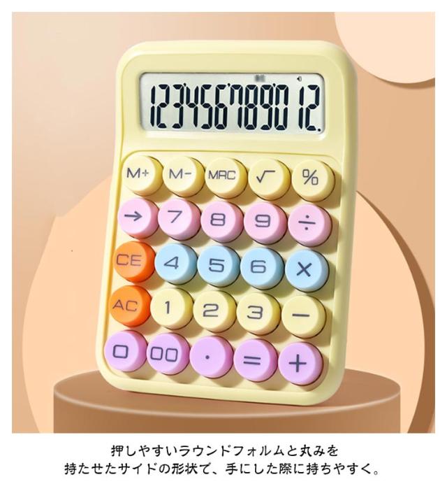 ミニ 12桁 可愛い カラフル 持ち運び便利 電卓 ラウンドボタン コンパクト 丸ボタン 電卓 かわいい 電卓 大型液晶ディスプレイ 電卓 外出 おしゃれ オフィス用 事務用 計算機 12ビット ビジネスに最適 業務実務