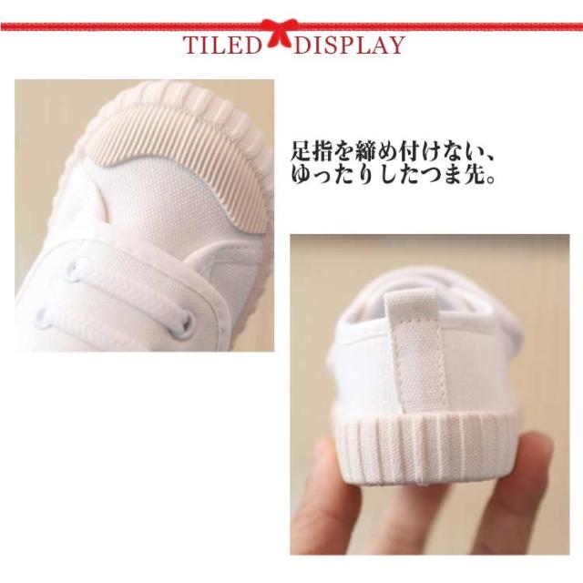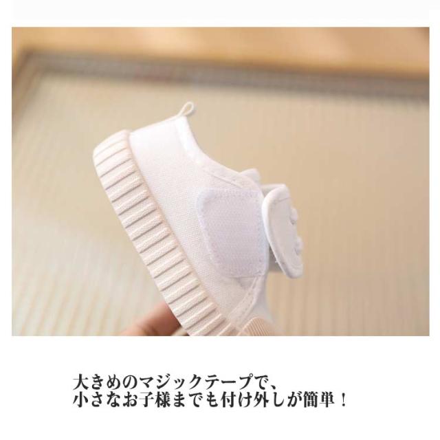 | ひとりでも履きやすいマジックテープ式上履き。 13.5〜19cm 大きめのマジックテープで、小さなお子様までも付け外しが簡単! ベルトを外すと履き口が大きく開くので、足もスムーズに入れられます。 足指を締め付けない、ゆったりしたつま先。 靴底は防滑性と屈曲性に優れた合成ゴムを採用、防滑意匠も施しているので滑りにくく安心です。 | |