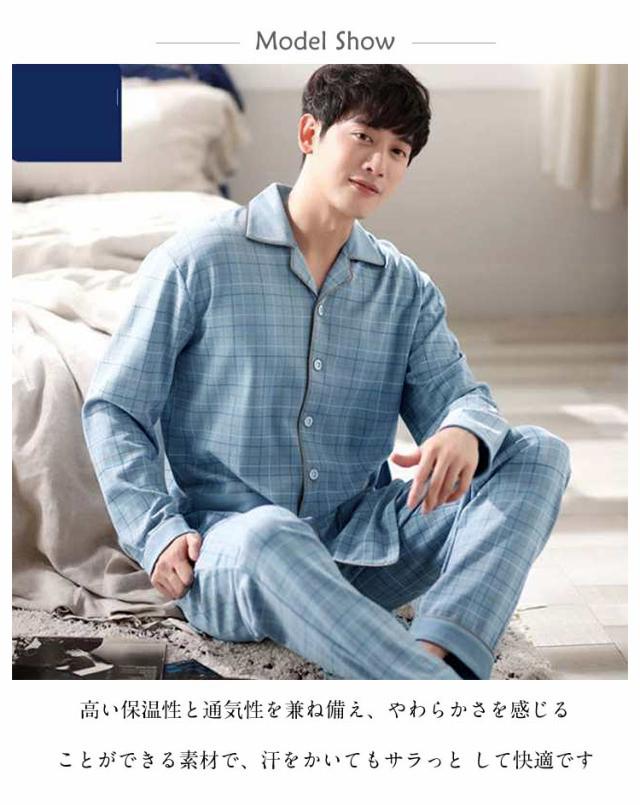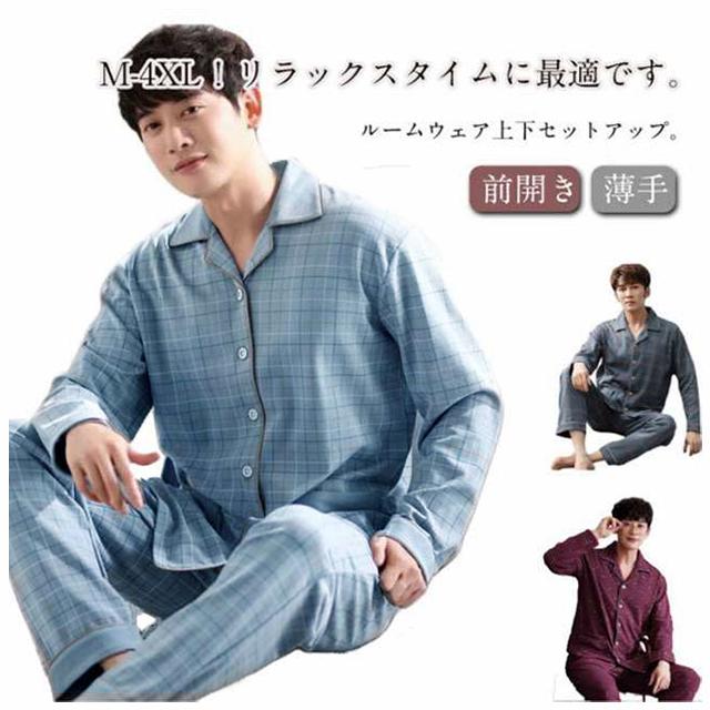 長袖 薄手 メンズ 長ズボン Tシャツ 寝巻き コットン 春 部屋着 寝巻き パジャマ 2点セット ルームウェア 上下セット 綿 前開き ナイトウェア 入院 男性 紳士 チェック柄 ルームウェア 入院 ロングパンツ リラックスウェア 大きいサイズ 父の日 ギフト 敬老の日