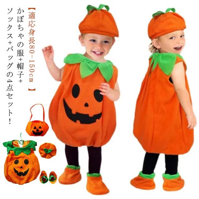 保育園 子供服 衣装 子供 仮装 カボチャ パンプキン キッズ ベビー 帽子 ハロウィン 4点セット かぼちゃ 幼稚園 コスプレ パーティーグッズ カバー かぼちゃ コスチューム コスプレ なりきり 男の子 女の子 halloween 演劇 舞台
