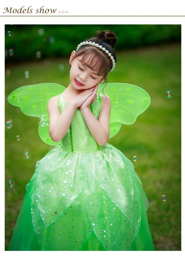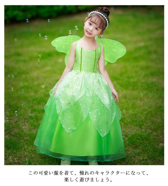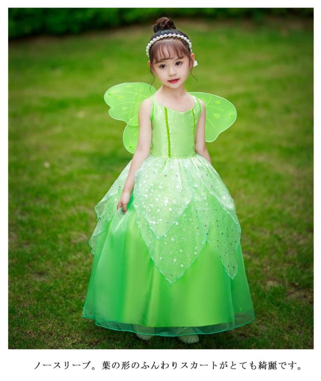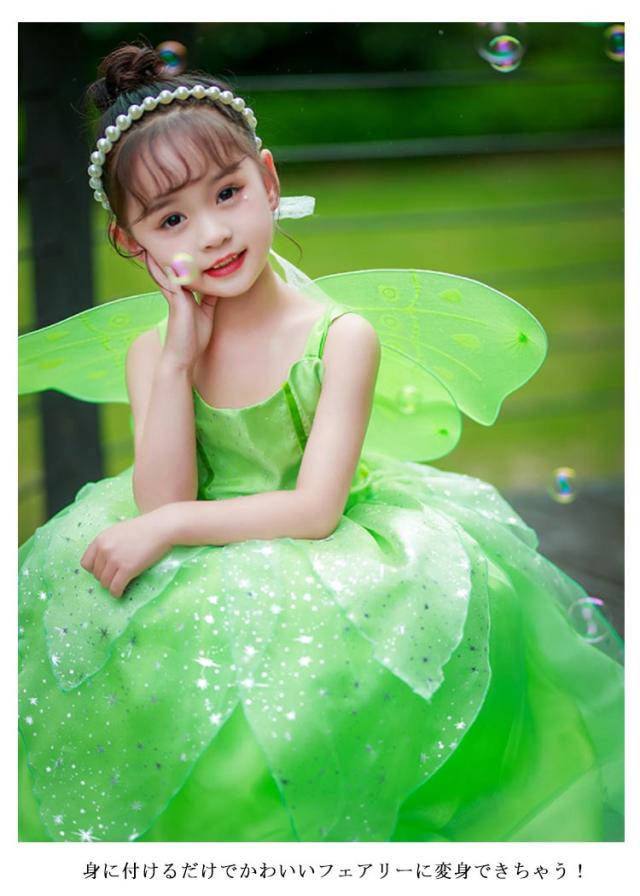 妖精 プリンセス ハロウィン コスチューム 結婚式 付き フェアリー コスプレ 子供用 仮装 妖精 翼 ハロウィン 衣装 子供ドレス 女の子 学園祭 文化祭 演出服 キッズ パーティー 舞台 演劇 衣装 100-150cm 緑 可愛い