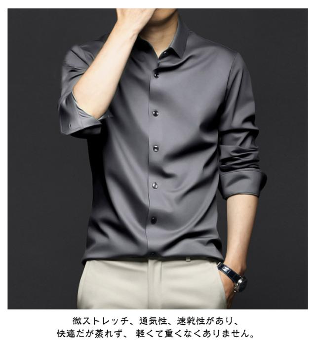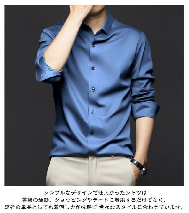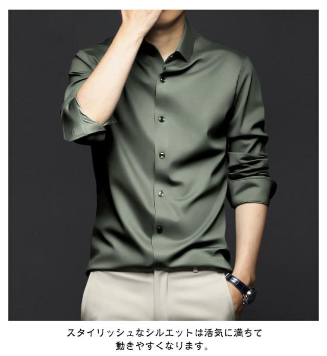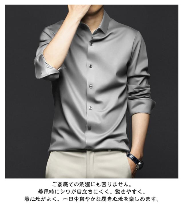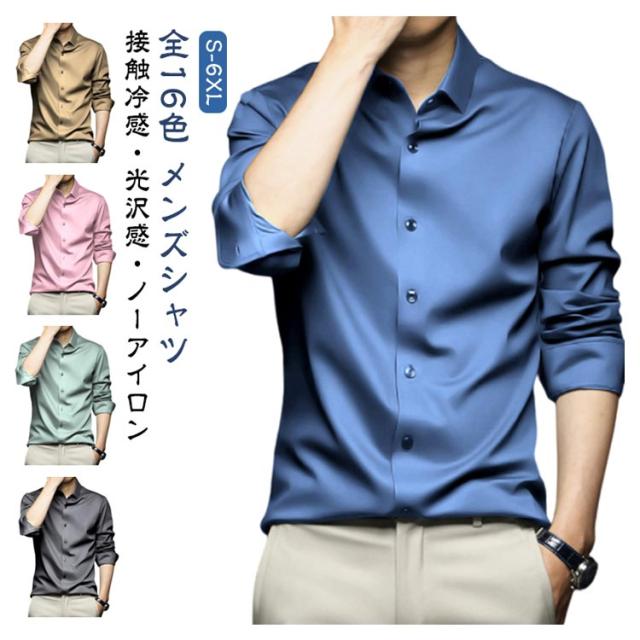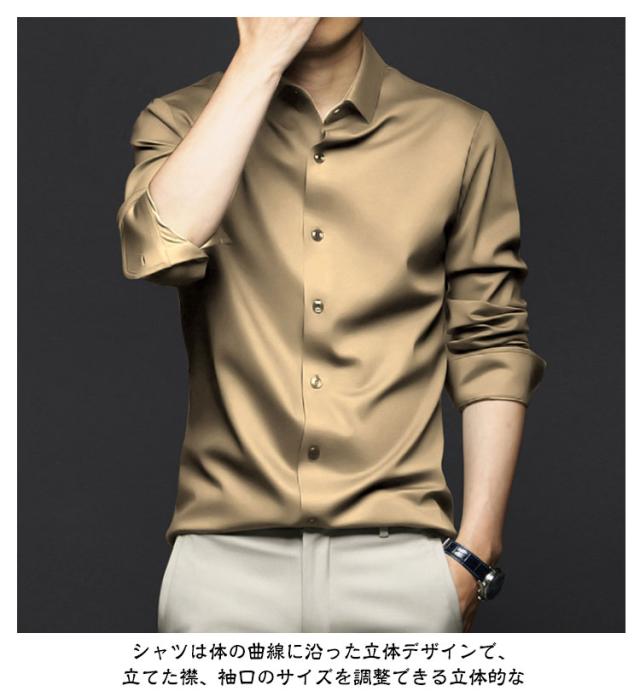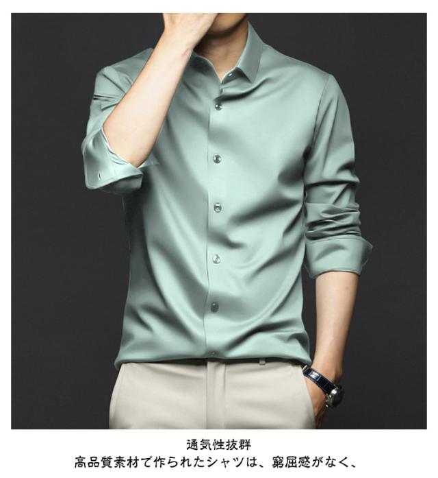 ノーアイロンシャツ シャツ メンズ ノーアイロン 光沢 ビジネスシャツ 長袖シャツ 長袖シャツ カジュアルシャツ 男女兼用 レディース アイスシルク 接触冷感 夏 おしゃれ 大きいサイズ 通勤 春 秋 長袖シャツ ビジネス