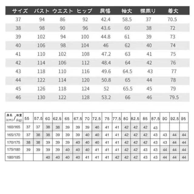 | サイズ | 38/S 39/M 40/L 41/XL 42/2XL 43/3XL 44/4XL 45/5XL 46/6XL |