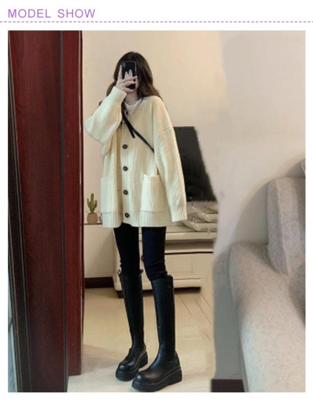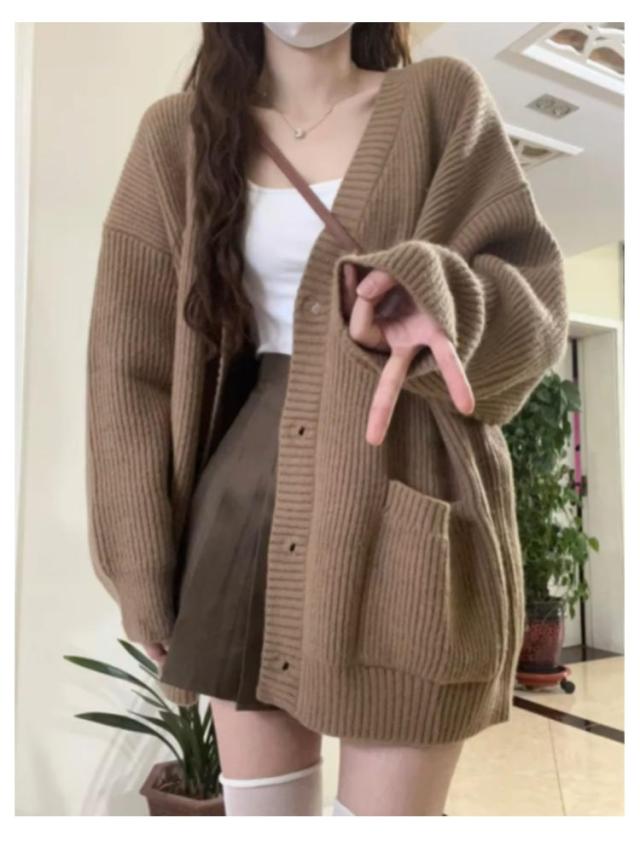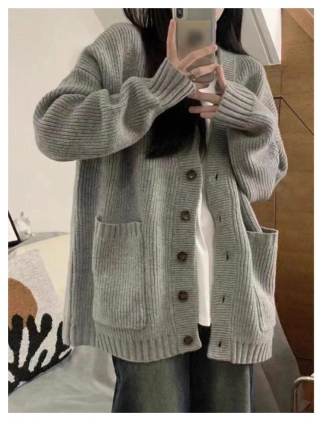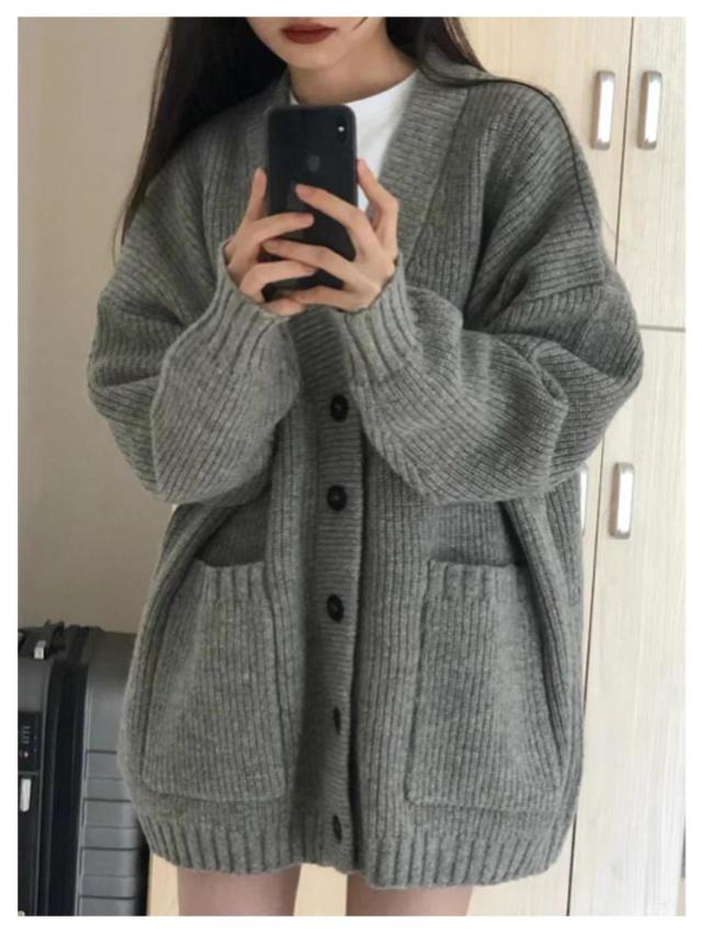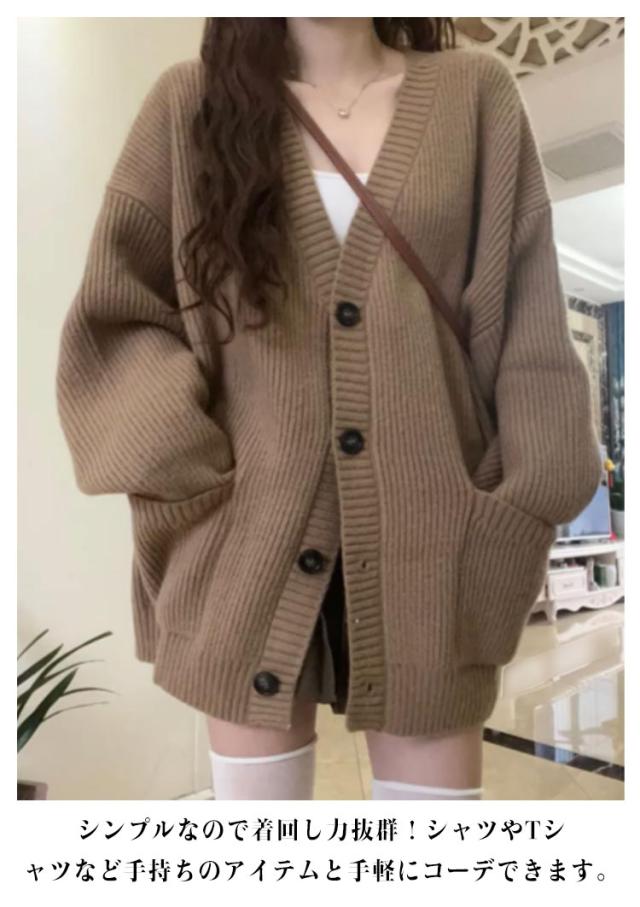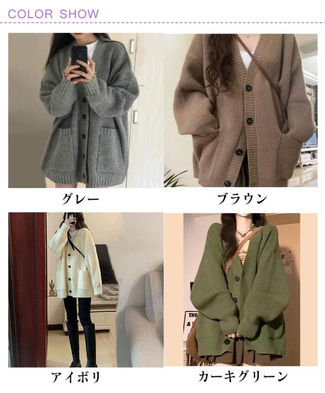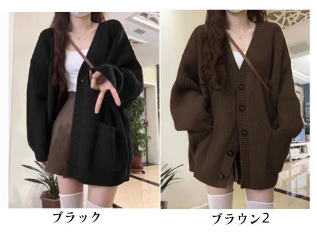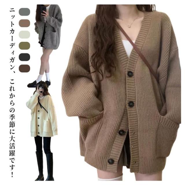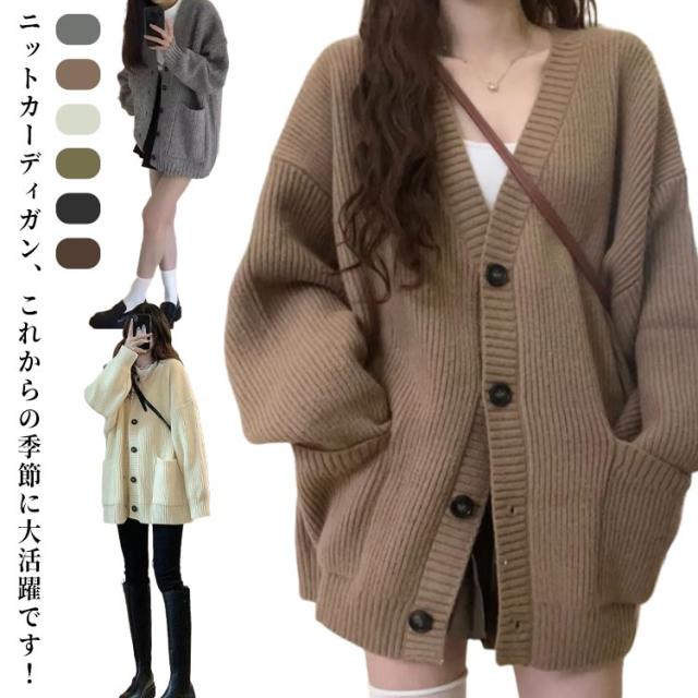 ニットカーディガン ルーズ カーディガン アウター 体型カバー カーディガン 暖かい ゆったり ロング丈 セーター シンプル 長袖 韓国ファッション 保温 レディース 大きいサイズ ポケット付き 可愛い 制服 冬 おしゃれ リブ袖 秋服 春 秋