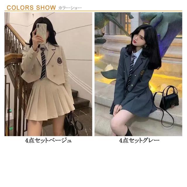高校生 4点セット 女の子 制服 スクール制服 韓国ファッション 女子高校生 ブレザー フォーマル セットアップ シャツ 学生服 制服 入学式 学園祭 文化祭 発表会 学生服 スーツ ネクタイ 女子高校生 上下セット セット ジレベストスーツ スカートスーツ 卒業式