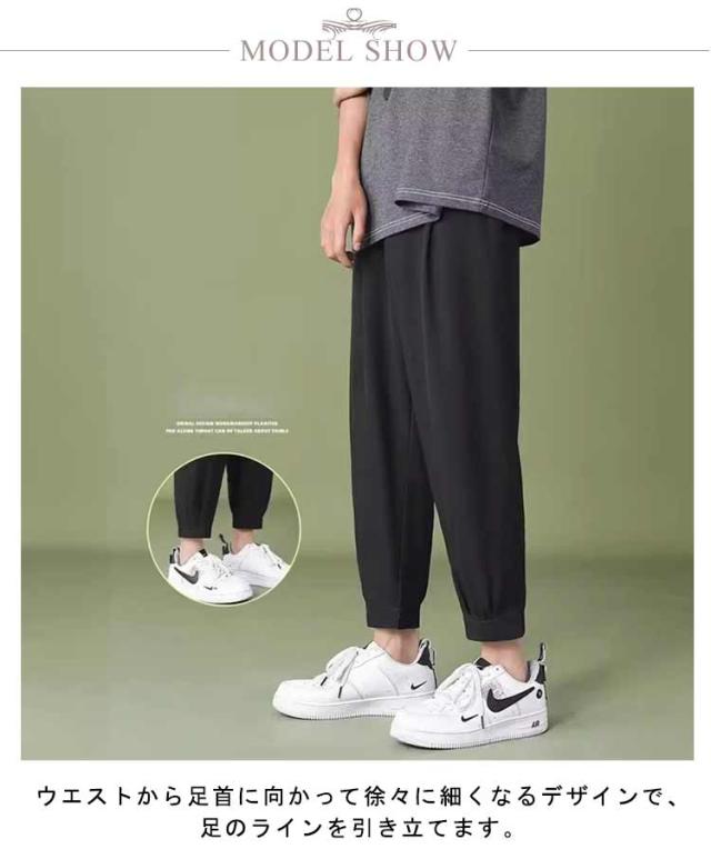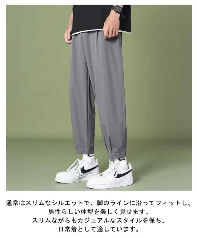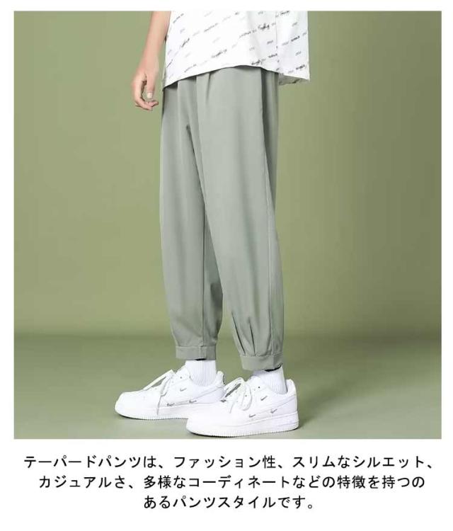 | ウエストから足首に向かって徐々に細くなるデザインで、足のラインを引き立てます。 通常はスリムなシルエットで、脚のラインに沿ってフィットし、男性らしい体型を美しく見せます。 スリムながらもカジュアルなスタイルを保ち、日常着として適しています。 様々なトップスと合わせやすく、カジュアルな場所からフォーマルな場所まで幅広く着用できます。 テーパードパンツは、ファッション性、スリムなシルエット、カジュアルさ、多様なコーディネートなどの特徴を持つのあるパンツスタイルです。 | |