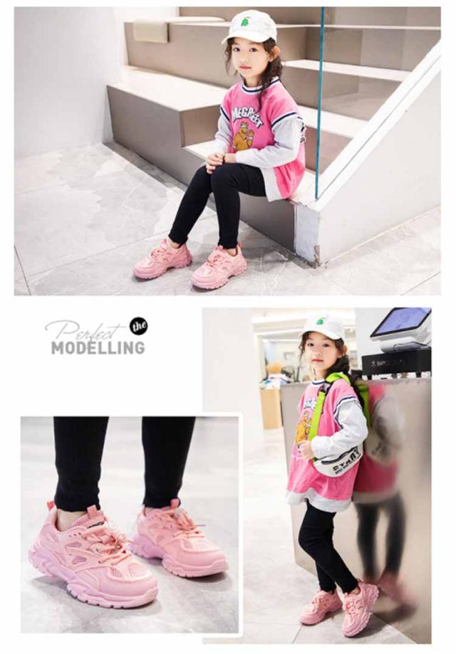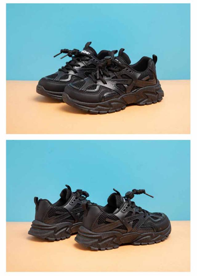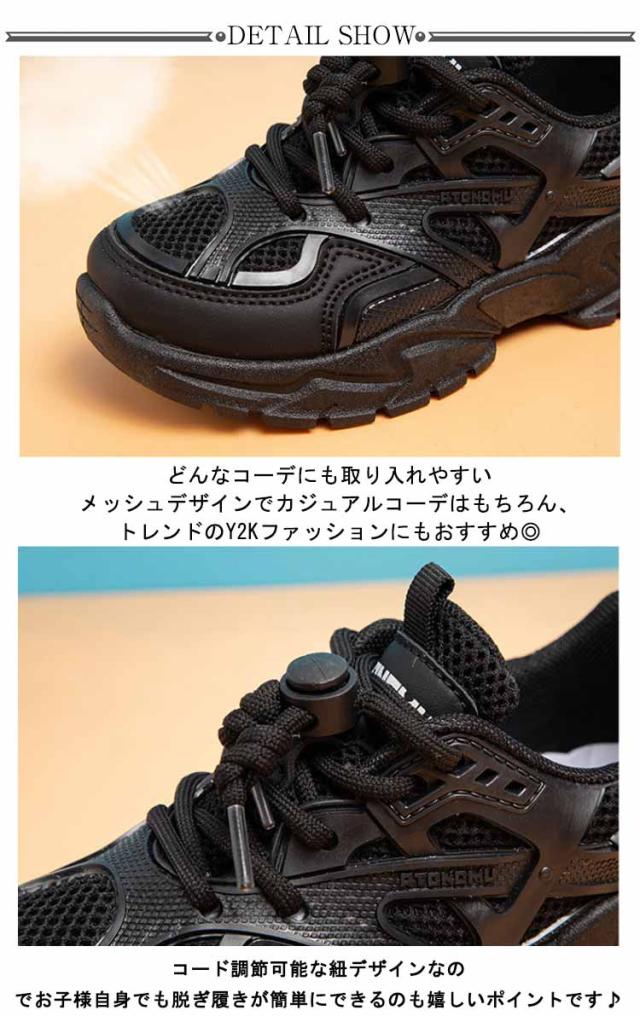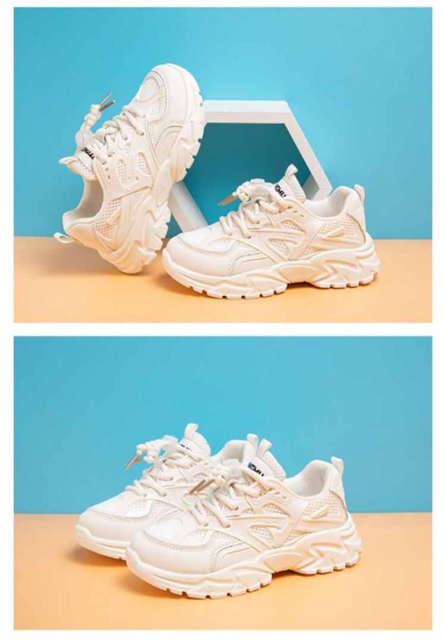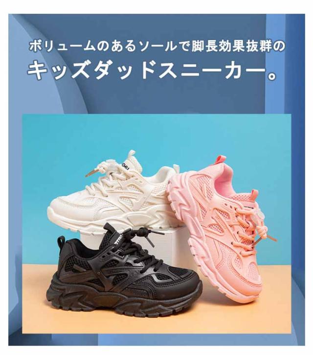 送料無料 スニーカー キッズ 男の子 女の子 ダッドスニーカー 厚底スニーカー 白 黒 運動靴 小学生 通学靴 メッシュ ランニングシューズ 厚底 ローカット 脚長 結ばない ほどけない靴紐 ダンス靴 おしゃれ 通学 軽量 子供 ジュニア 18〜24cm