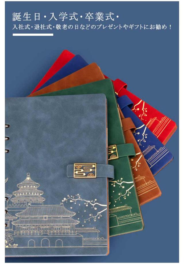 ノート A5サイズ B5サイズ システム手帳 卒業祝い メモ帳 システム手帳 手帳 PUレザー レトロ 文房具 おしゃれ 中華風 ペンホルダー付き 入社祝い 昇進祝い 合成皮革 記念品 プレゼント
