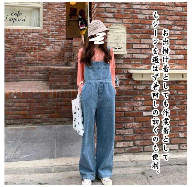 デニムサロペット レディース オーバーオール デニムパンツ ゆったり ロングパンツ サロペット デニム 大きいサイズ つなぎ おしゃれ レディース 春秋 カジュアル 20代 30代