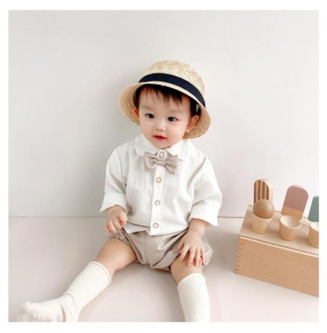| やんちゃな僕も英国紳士のようにスマートに大変身 【3点セット】 Tシャツ+ズボン+蝶ネクタイ 上下セットで着るだけでなく、それぞれ単独でも着まわしでき、お手持ちの服とも簡単二組み合わせられます。 シャツは前開きタイプ、ボタンのデザインでお着替え簡単です。シンプルで個性的なデザインと丁寧な縫製に合わせて、オシャレ感溢れ、お子さんの可愛さをより引きたせてくれます。 半ズボンはふんわりで動きやすい、耐久性が高く、運動時の快適さを実現できます。元気に動きまわるお子様にもご安心いただきます。ウェストはゴム仕様なので履きやすく、サイズに融通が利きます。 かっこいい洋装、リボンネクタイは取り外し可能、フォーマル場所だけでなく日常場合も適用できます。 保育園児、幼稚園児、小学生の普段着はもちろん、通園、通学、入園式、卒園式、入学式、発表会、卒業式、結婚式、ダンスウェア、ステージ衣装、舞台服、演出服、文化祭、学園祭、コスプレなど様々な場合、イベントやパーティーにもおすすめです。 | |