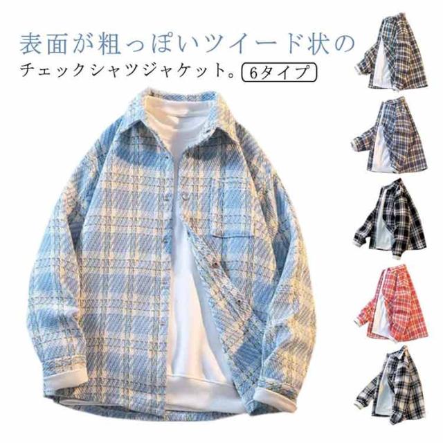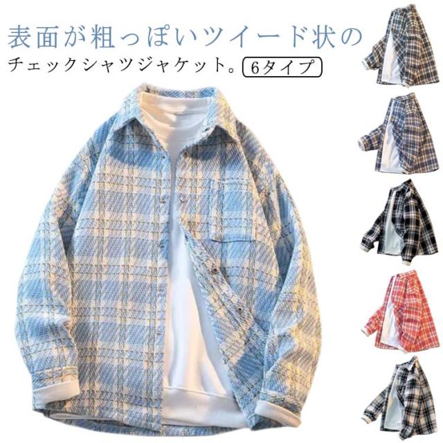 ツイード ツイードジャケット チェック柄 ツイード 長袖シャツ 秋 冬 厚手 柄シャツ シャツジャケット スナップボタン カジュアルシャツ チェックシャツ 大人 カジュアル 春服 秋服 ライトアウター 羽織り ゆったり かっこいい