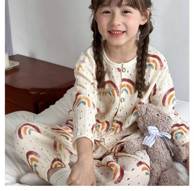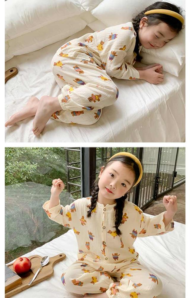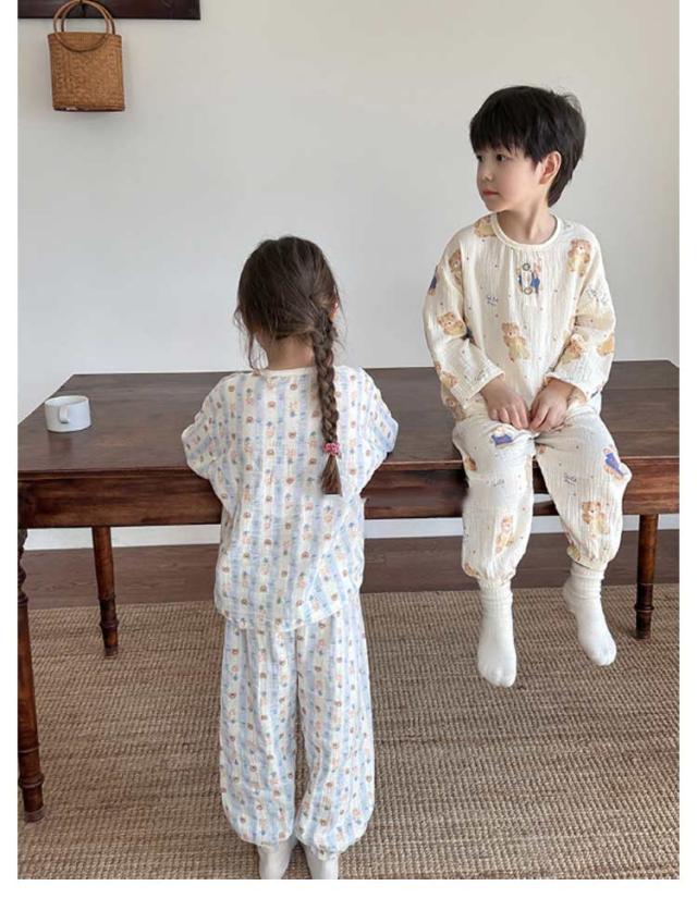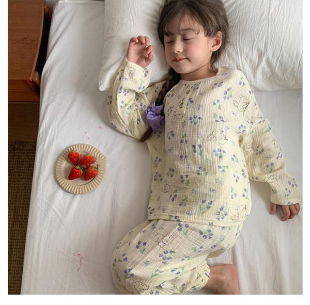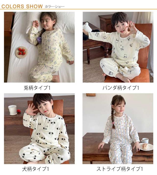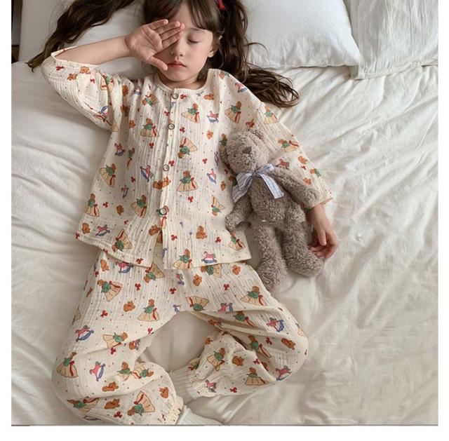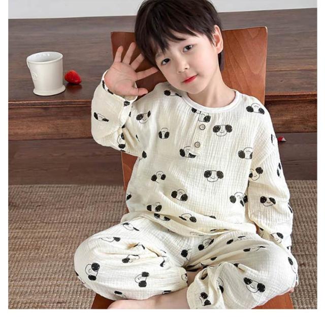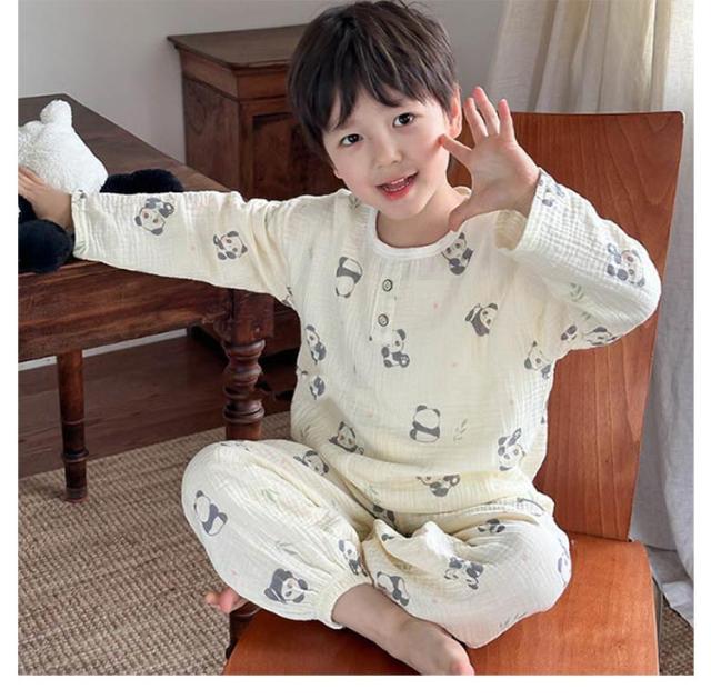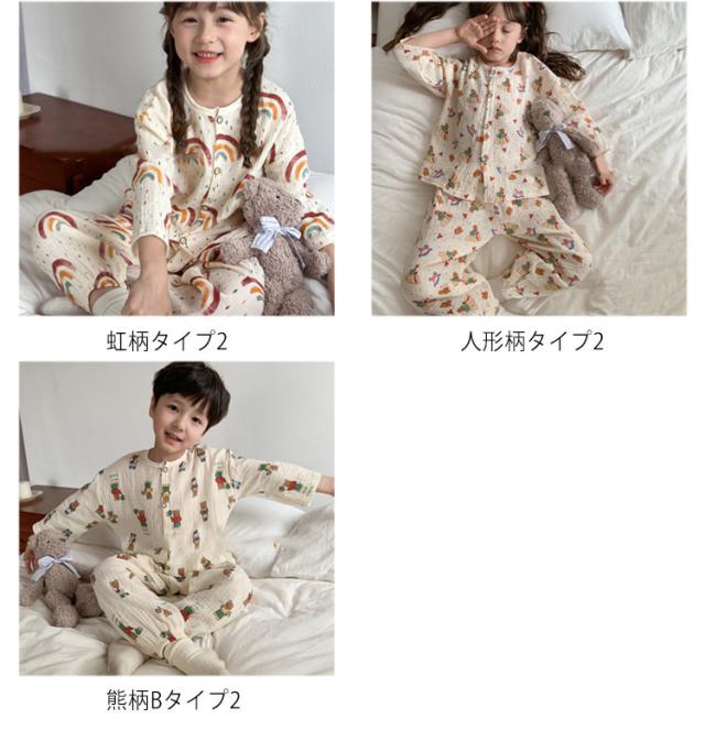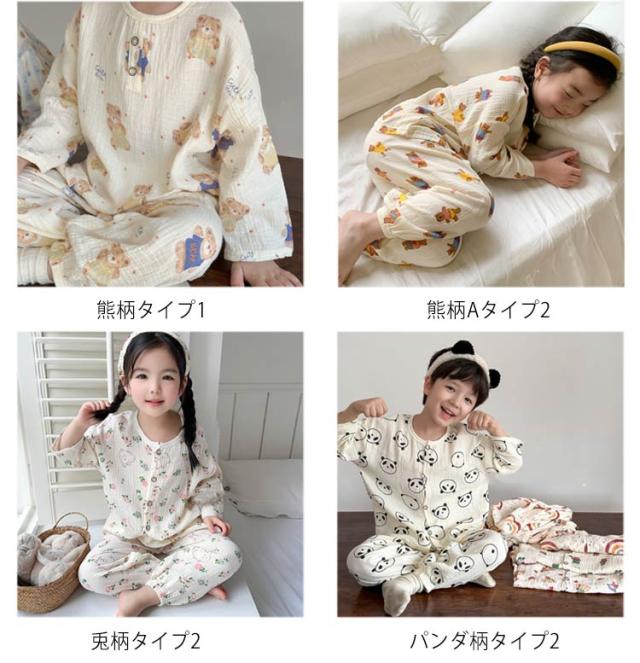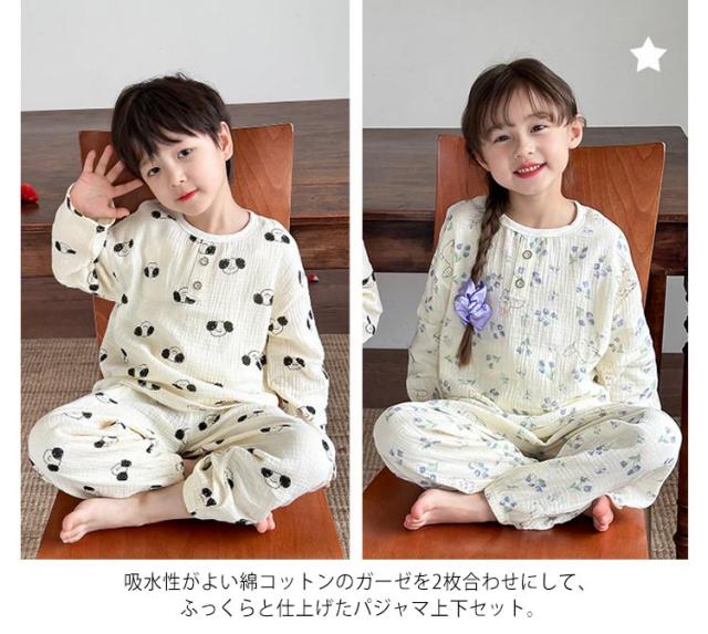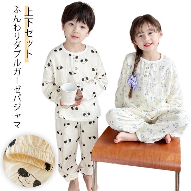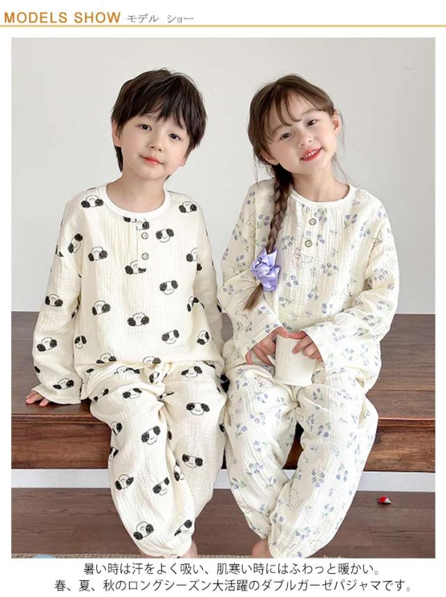 キッズ 子供用 薄手 女の子 ダブルガーゼ パジャマ ルームウェア 前開き 男の子 綿コットン パジャマ 春秋 長袖 春夏 ラウンドネック プルオーバー 長袖 長ズボン 部屋着 幼稚園 小学生 寝巻き 裾ゴム 室内着