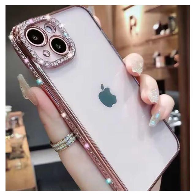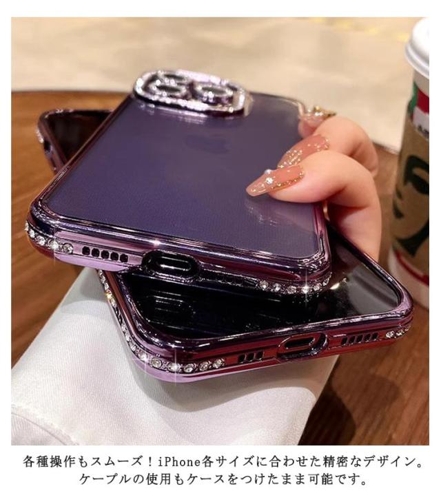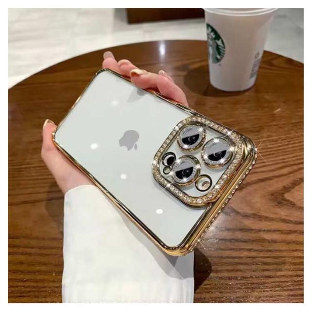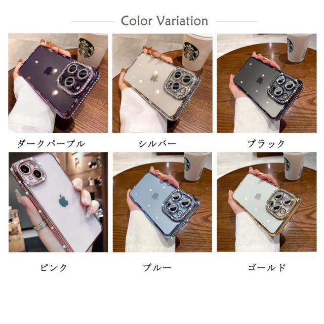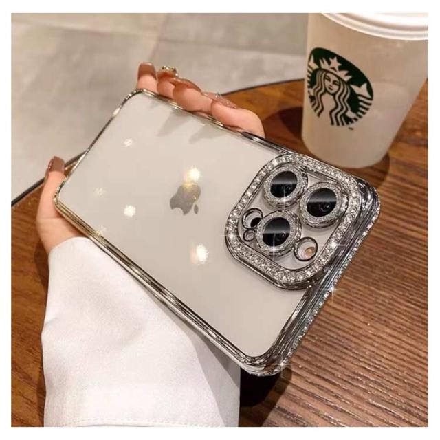 | メッキ加エクリアケース。キラキララインストーン! カメラレンズを保護!カメラホールはレンズより高さがあるため外部からの衝撃や傷を保護します。 各種操作もスムーズ!iPhone各サイズに合わせた精密なデザイン。ケープルの使用もケースをつけたまま可能です。 押しやすいボタン!ケースの上からでも押しやすいポタン設計。 柔らかいTPU素材!変色しにくく高品質なTPU素材を採用ソフトな素材感と耐久性が特徴! | |