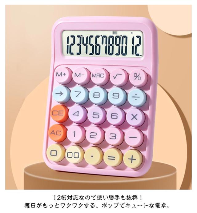 可愛い かわいい 12ビット 電卓 ミニ 持ち運び便利 卓上 ラウンドボタン 12桁 電卓 電卓 カラフル 大型液晶ディスプレイ コンパクト 外出 丸ボタン オフィス用 事務用 計算機 おしゃれ ビジネスに最適 業務実務