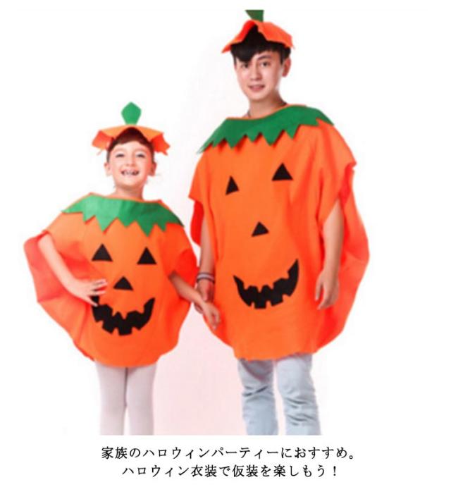 | 子供用と大人用の2サイズ。ハロウィン衣装 かぼちゃ服 +帽子+バッグ 3点セット 家族のハロウィンパーティーにおすすめ。ハロウィン衣装で仮装を楽しもう! | |
