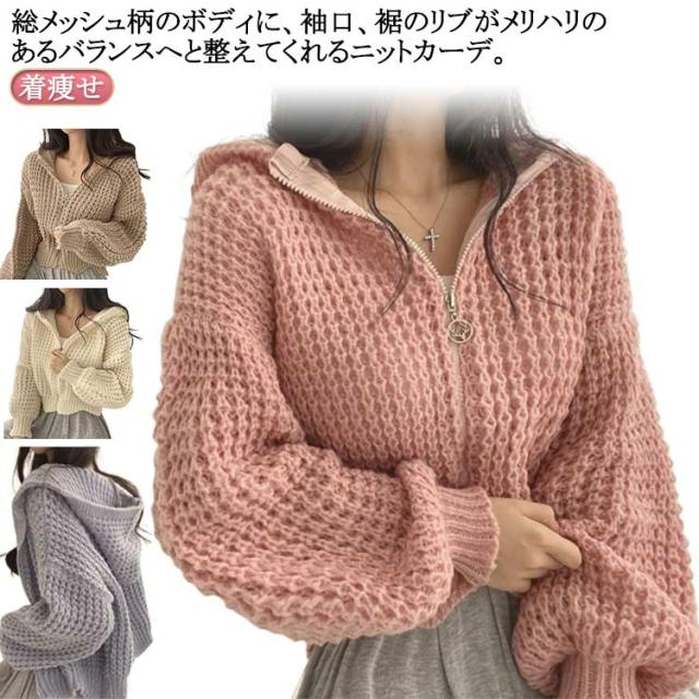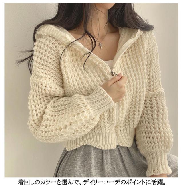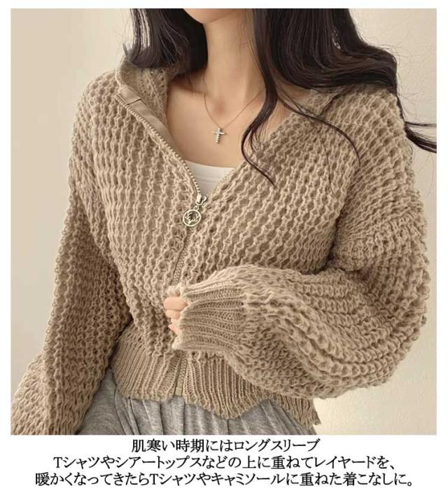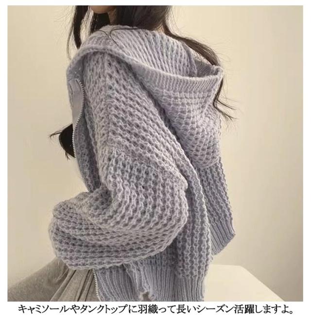 薄手 メッシュニットカーディガン カーディガン メッシュニットカーディガン トップス ニットパーカー ショート丈 レディース パーカー フード付き ライトアウター 羽織 ニットトップス 長袖 ゆったり 着痩せ おしゃれ きれいめ シンプル 無地 春