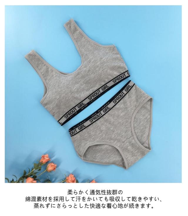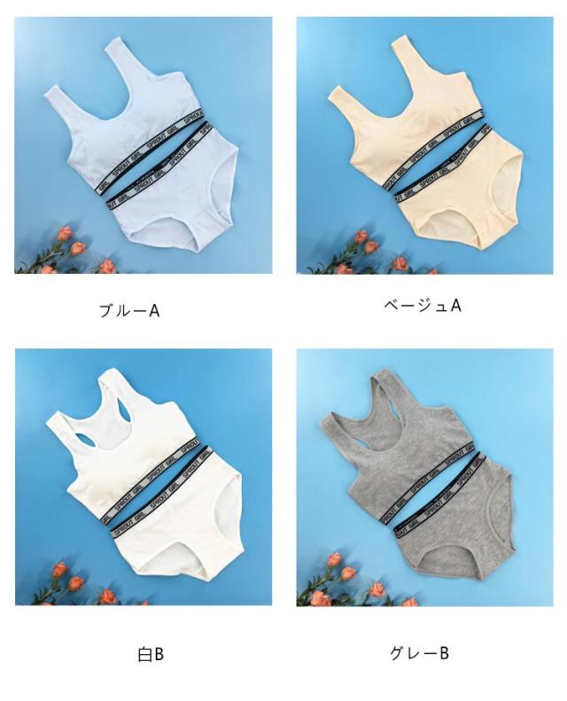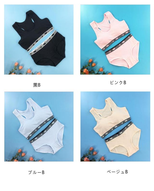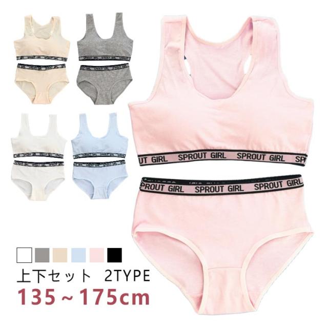 ジュニアブラ 下着 上下セット ショーツ スポーツブラ ジュニア キッズ スポブラ 中学生 小学生 135〜175cm ハーフトップ 子供 ブラジャー 女の子 女子 ノンワイヤーブラ パッド付き インナー ガールズ 可愛い 綿 コットン 下着セット