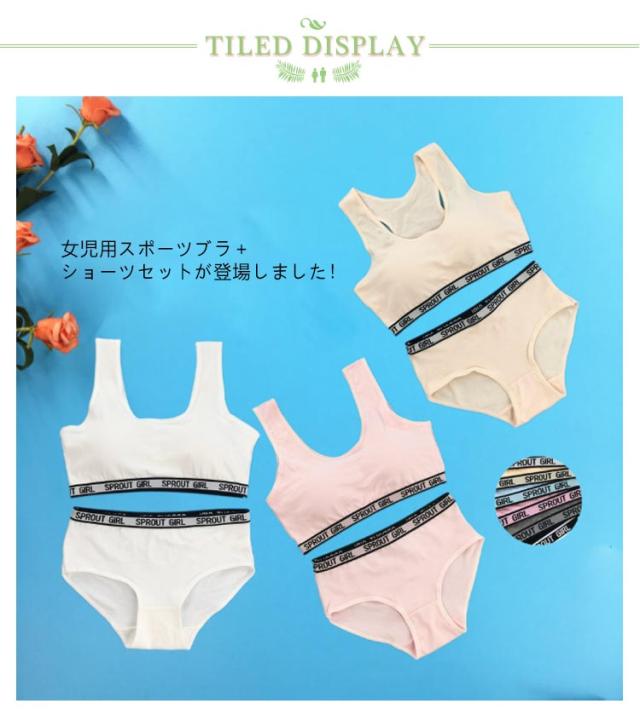 | 【上下セット】【135〜175cm】【2TYPE】 女児用スポーツブラ+ショーツセットが登場しました! 上下のインナーがお揃いで気持ちいい♪まとめ買いに便利な【 上下セット 】です。 柔らかく通気性抜群の綿混素材を採用して汗をかいても吸収して乾きやすい、蒸れずにさらっとした快適な着心地が続きます。 ストレッチ(伸縮性あり) カップ取り外し可能(カップ入れ替え口あり) | |