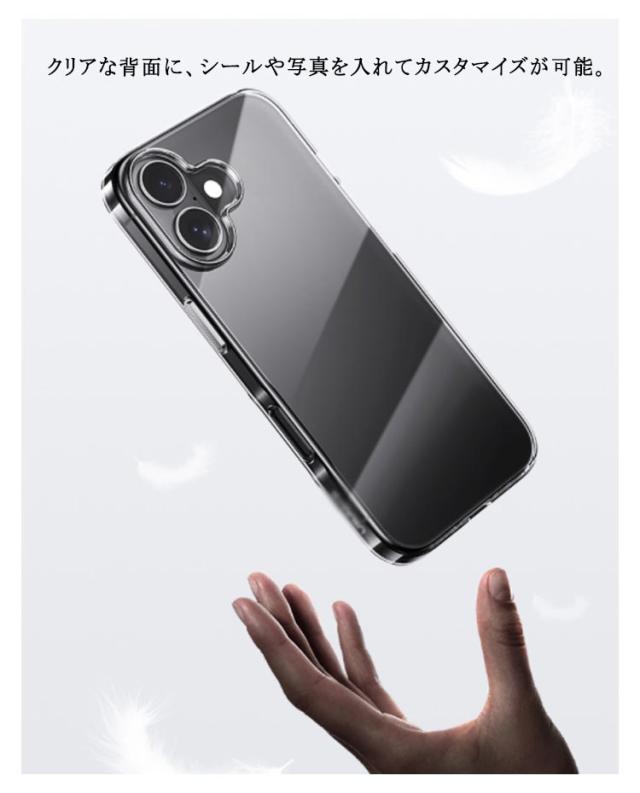 | 極上透明・黄ばみ知らず iPhone16 ケース 全てが透明なので、iPhone本体の色を楽しむことができます。 弾力のあるTPUで、端末をしっかり保護。 画面とカメラを守る、フチ高設計。 クリアな背面に、シールや写真を入れてカスタマイズが可能。 | |