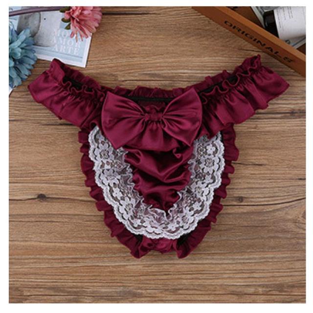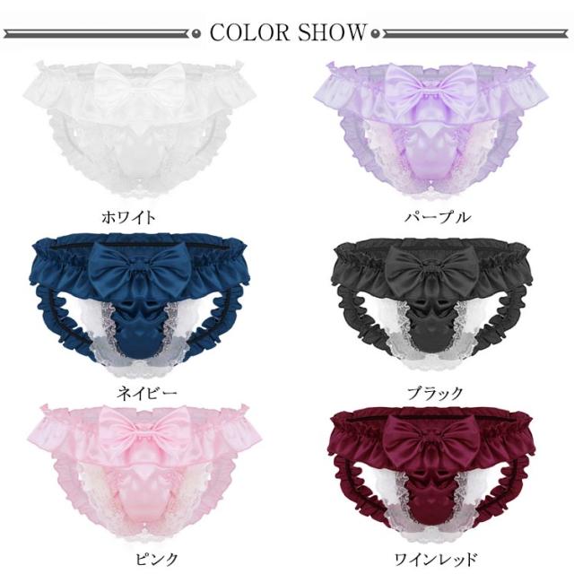 Tバック レース メンズ 男性用下着 ローライズ リボン 男性用ショーツ サテン調 メンズ フリル フルバックショーツ インナー ショーツ ジェンダーレス 下着 肌着 女装 コスプレ 乙女男子 男の娘 かわいい セクシー