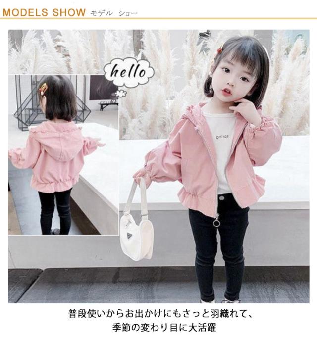 90 パーカー アウター フリルブルゾン こども 子供服 マウンテンパーカー キッズ 羽織り 女の子 秋コート 秋冬 春コート ジャケット 韓国子供服 通学 通園 100 ウィンドブレーカー 110 120 130 140cm