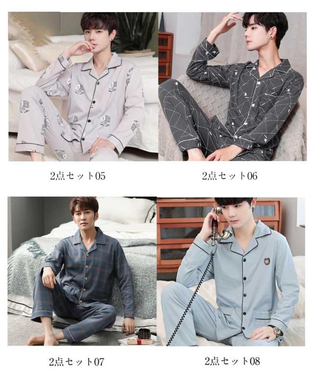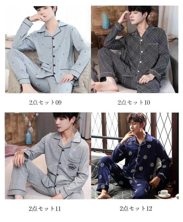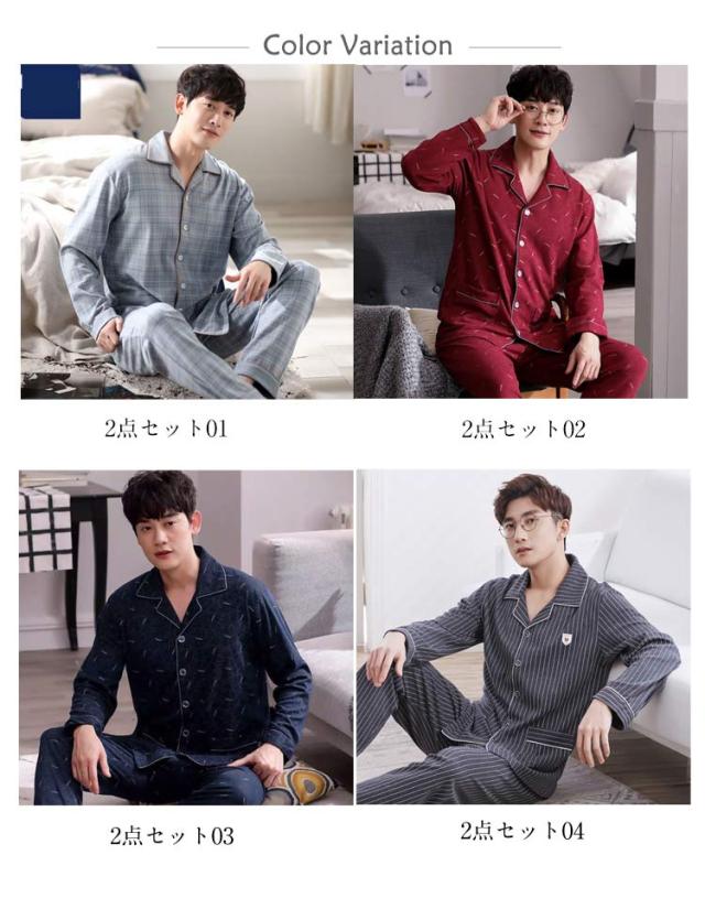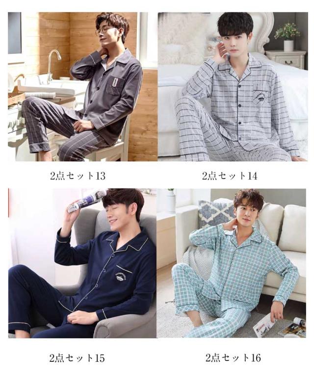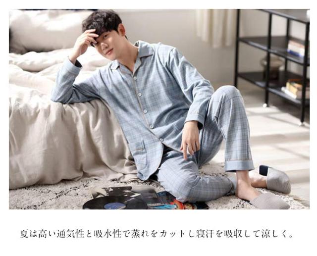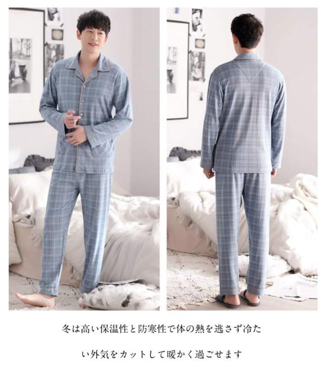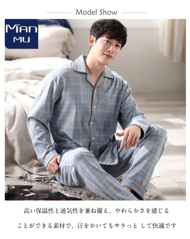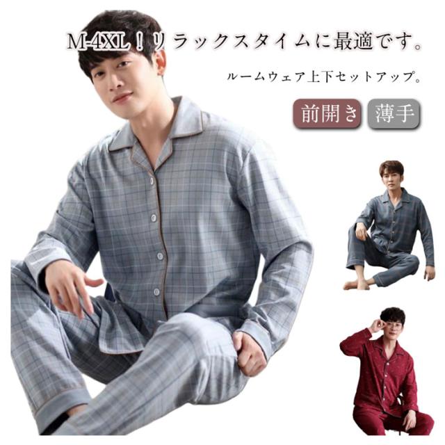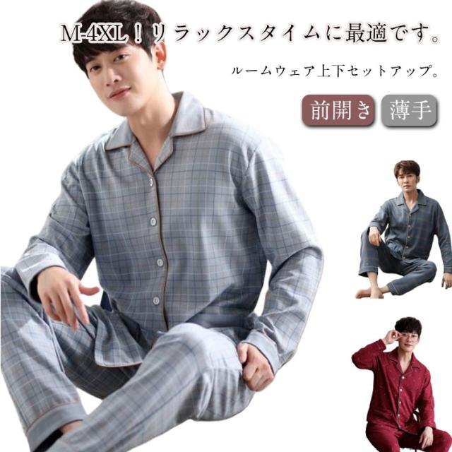 メンズ 春 寝巻き チェック柄 薄手 長袖 大きいサイズ 入院 秋 パジャマ Tシャツ 2点セット ルームウェア 上下セット 綿 コットン 寝巻き 紳士 男性 部屋着 前開き ルームウェア 入院 ロングパンツ リラックスウェア ナイトウェア 父の日 ギフト 敬老の日