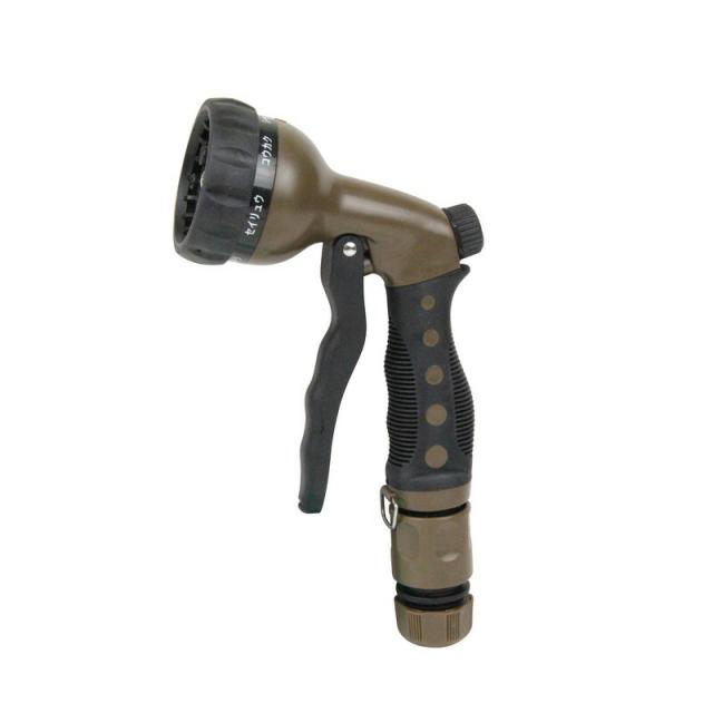 | 仕様 | ●色:ブラウン。●適合ホース内径:12〜15mm。●適合ホース外径:20mmまで。●散水パターン:ジェット・シャワー大・シャワー小・霧・整流・広角・横拡散。 |