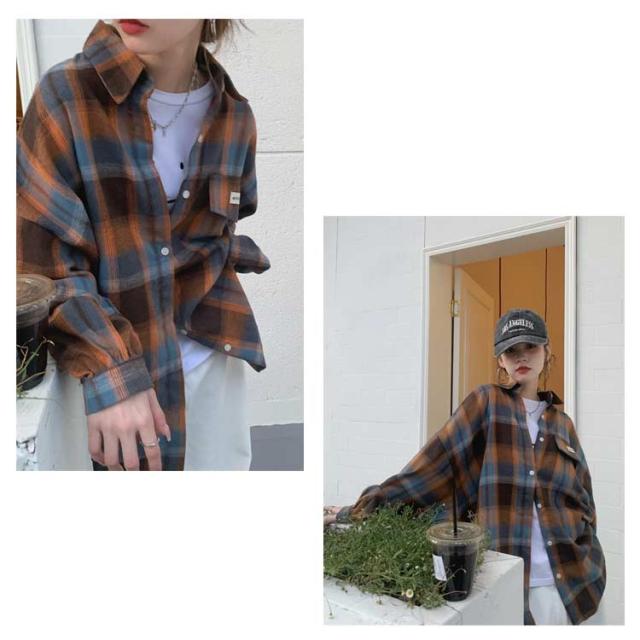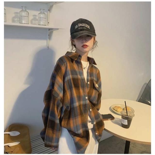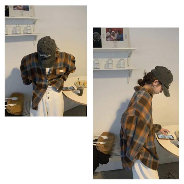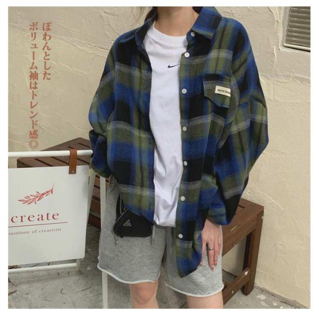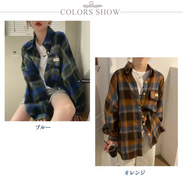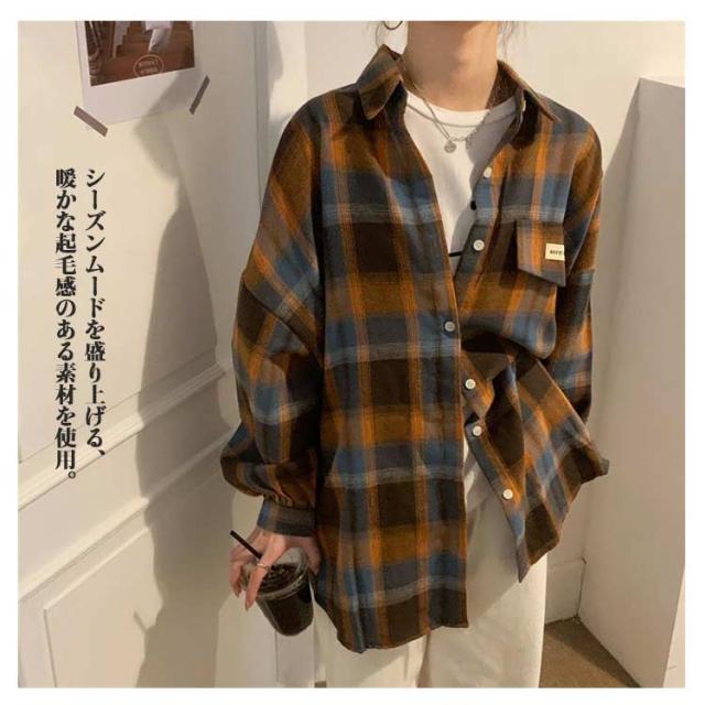 ネルシャツ レディース チェック柄 長袖シャツ 春服 ボリューム袖 冬 チェックシャツ 羽織り 秋 柄シャツ 暖かい ネルシャツ 起毛シャツ ブラウス オーバーサイズ ゆったり カジュアルシャツ 秋服 秋物 カジュアル 通学 通勤 おしゃれ 大きいサイズ ブルー オレンジ