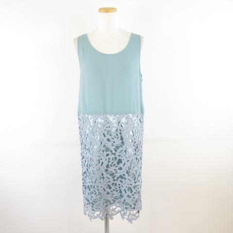 【中古】アナカ Unaca ノースリーブワンピース レース ひざ丈 緑 グレー 38 *A476 レディース