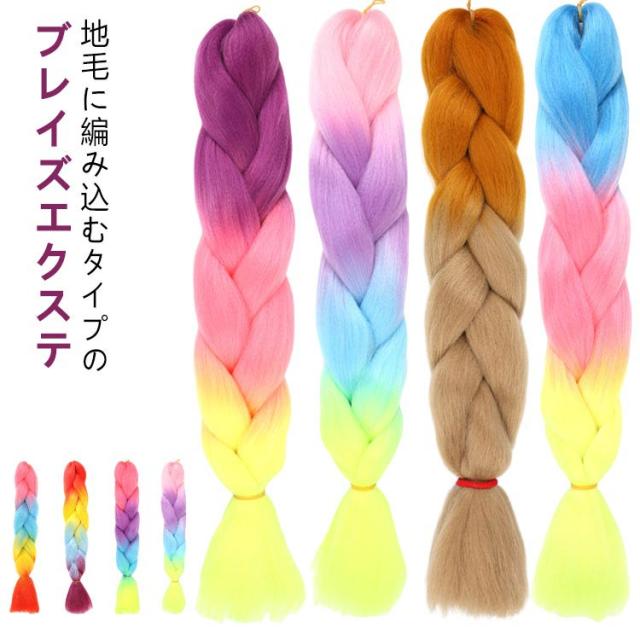 グラデーション ブレイズ ドレッド エクステ 編み込み用 三つ編み コーンロウ ヒップホップ ダンス キッズ 大人 レディース 子供 18カラー ヘア みつあみ ハロウィン コスプレ 仮装 衣装 ウィッグ ピンク 黒 青 赤 ブレイズエクステ