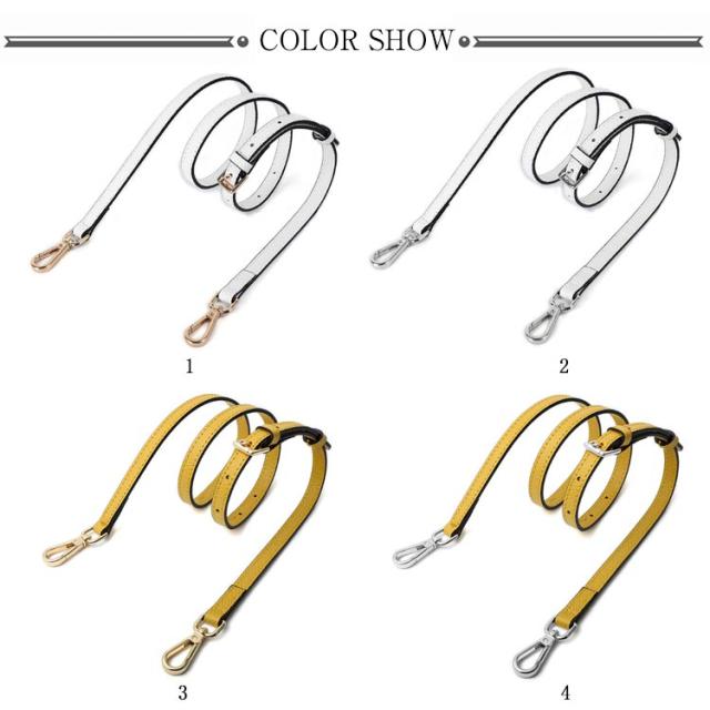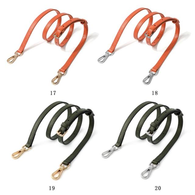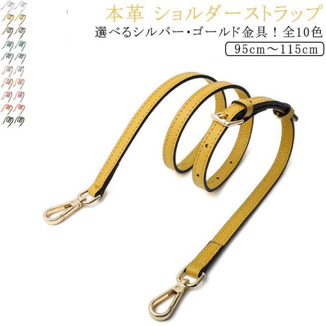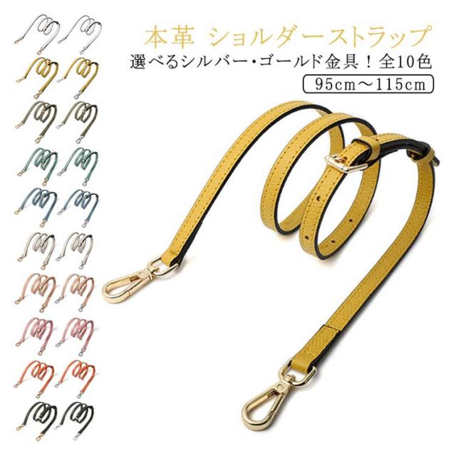 | 本革 ショルダーストラップ 選べるシルバー・ゴールド金具! 全10色 お手持ちのショルダーバッグに取り付けるレザー製の交換用ベルトです。 いずれも両端に金具が付いた脱着可能式。 幅1.2cmで、どんなコーデにも合わせやすく、95cmから115cmまで、長さ調節が可能です。 | |