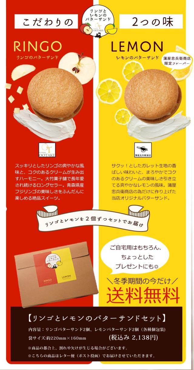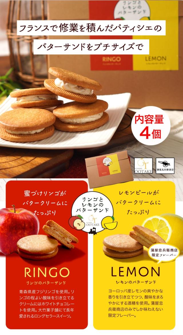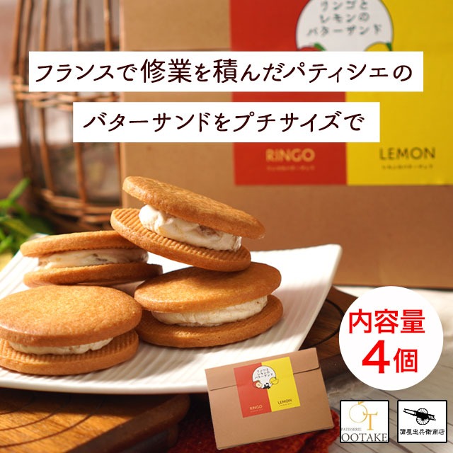 | 内容量 | 4個(リンゴのバターサンド2個、レモンのバターサンド2個) |
