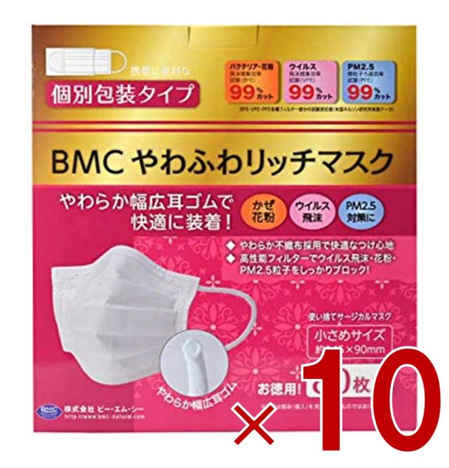 【23-29日限定 タイムセール】BMC やわふわリッチマスク 小さめ 80枚 サージカル 不織布 大人用 個別包装 10個