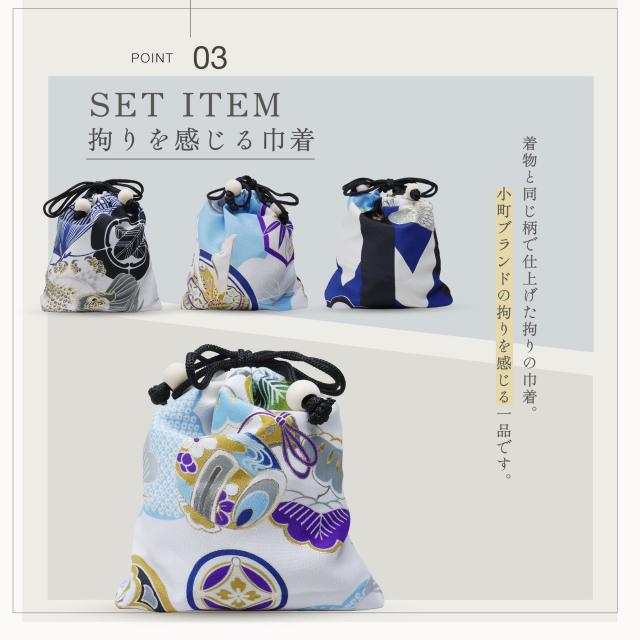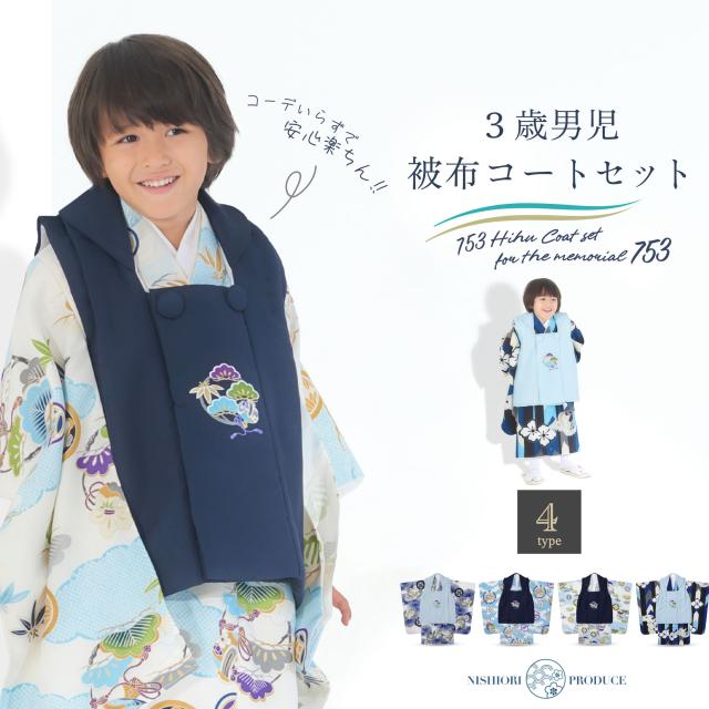 小町kids 3歳 男児 被布コートセット 七五三 着物 男の子 男児 被布コート 選べる4柄 6点 フルセット 水色 黒 白 和柄 白 販売 衣装 753 初節句 端午の節句 お宮参り お正月 子供 キッズ こども 三つ身着物 古典 松竹梅 鷹 兜 モダン 和服 ギフト レトロ 雪駄