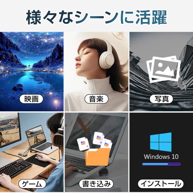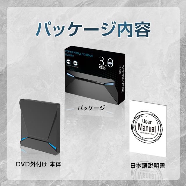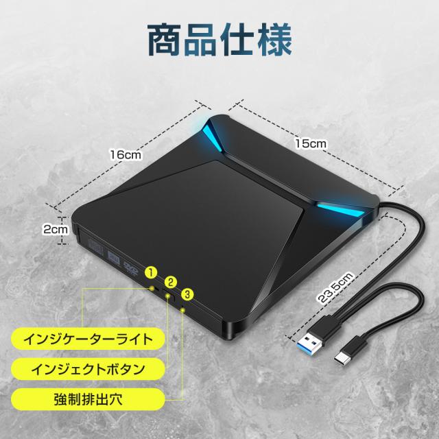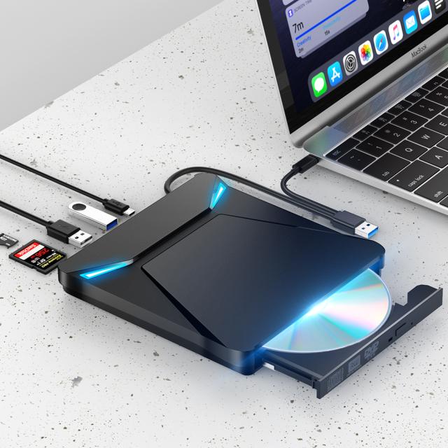 CD DVD の書き込みと読み取りができるだけでなく、USB 3.0 ポート2つ、TFカード/SDカードも対応可能で、とにかく機能が多い!CD や DVD をラップトップに直接接続して、音楽を聴いたり、映画を見たり、データをバックアップしたり、 システムをインストールしたりすることはできます。 USBとType-Cの二種類ポートが搭載されており、より多くのPCシステムに対応しておる。