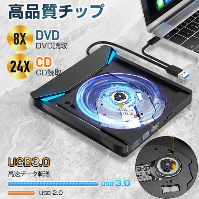 USB 3.0はUSB 2.0の更新バージョンで、最大5ギガビット/秒(625MB/秒) の高速データ転送速度を提供します。USB 2.0の約10倍の速さです。それに加えて、CD ドライブは最大8倍のDVDR読み取り速度と最大24倍のCD書き込み/読み取り速度を提供し、 予想よりも高速です。システム保護機能が付き、データの伝送がより安定していて、パソコンの異常によって、データが紛失される恐れがなくなる。「ご注意:本製品はブルーレイディスクには対応しておりません。」