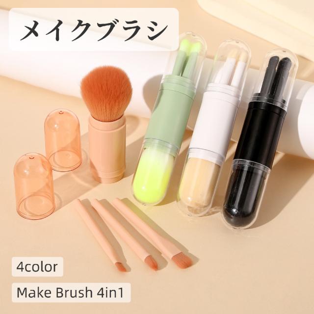 メイクブラシ 4in1 4本セット 一体型 フタ付き 化粧ブラシ フェイスブラシ パウダーブラシ コスメ 化粧筆 携帯用 ポータ